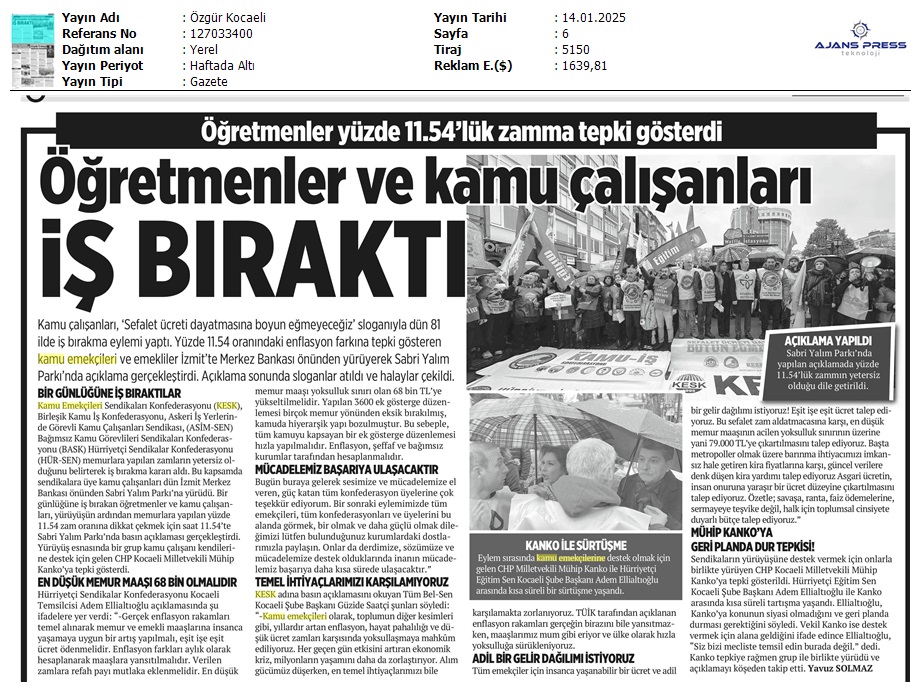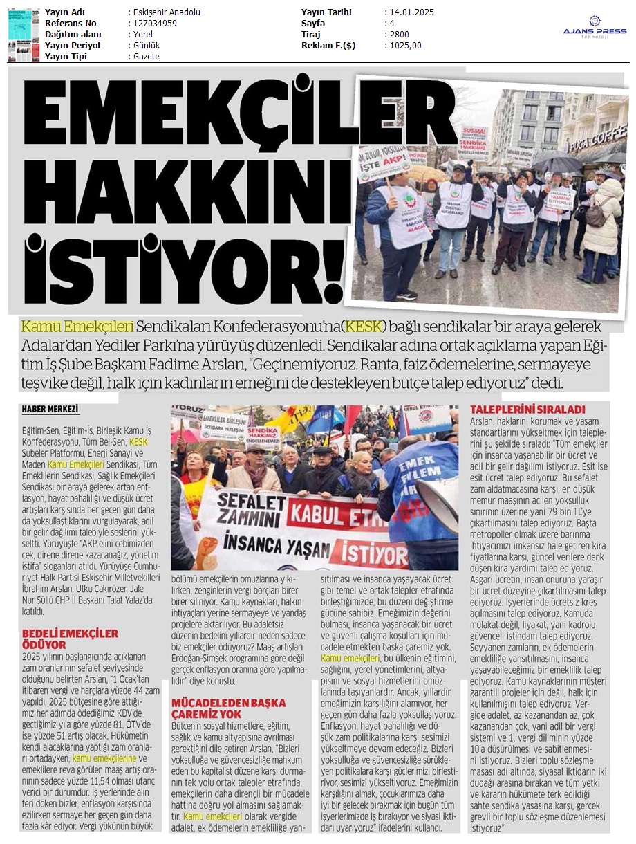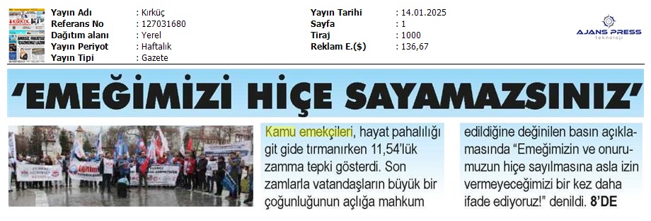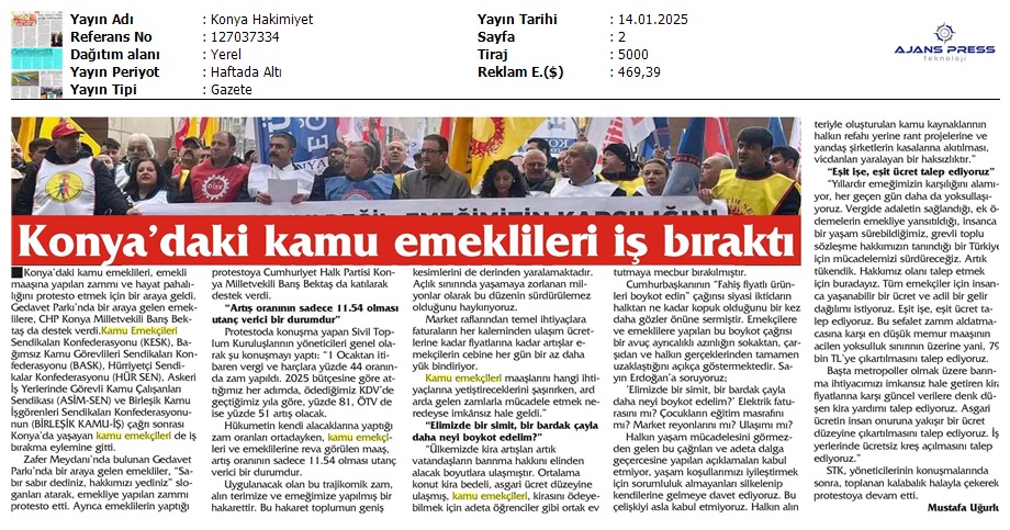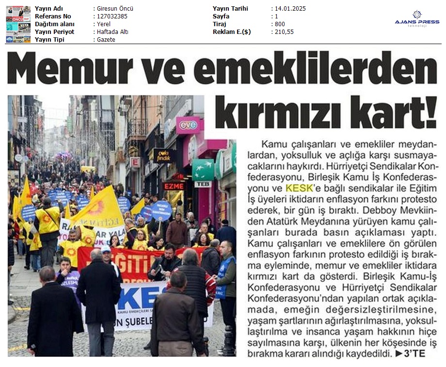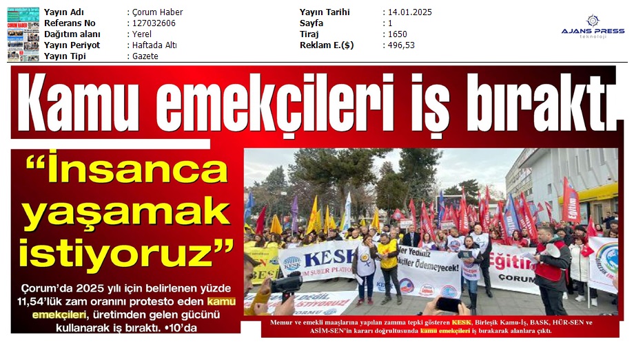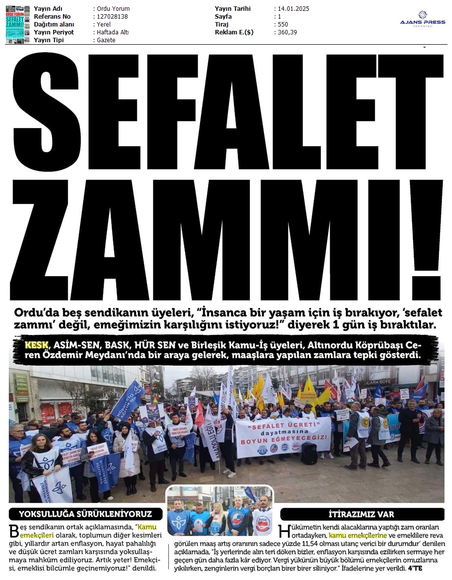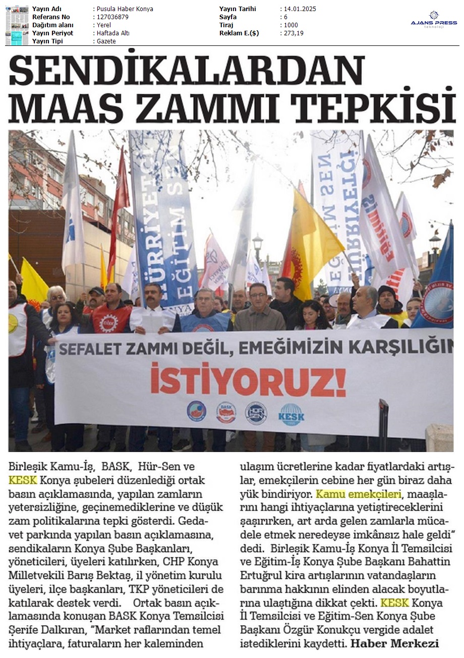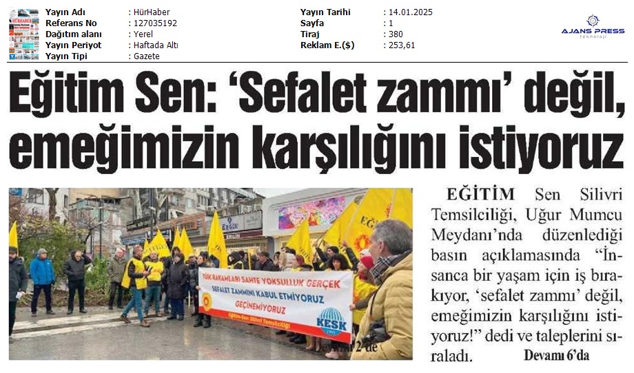 Basında 13 Ocak İş Bırakma Grevimizi