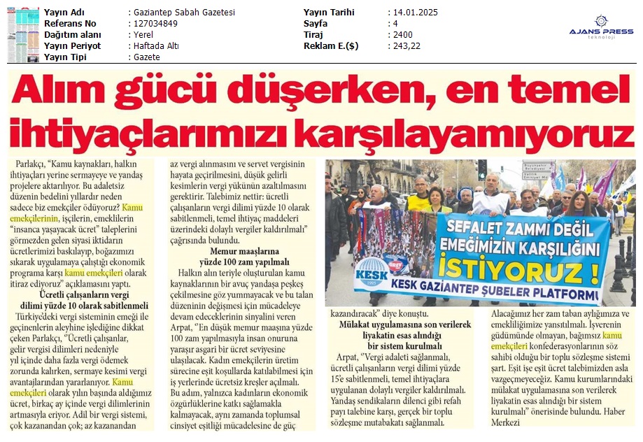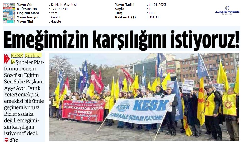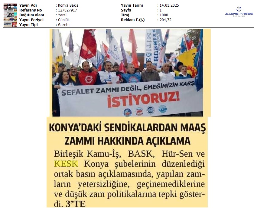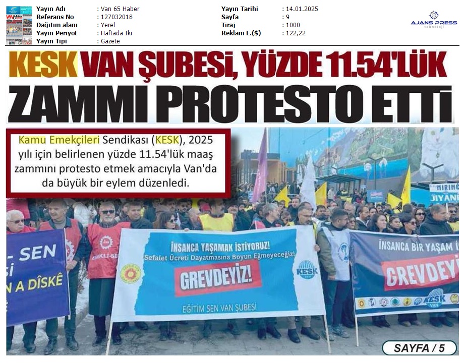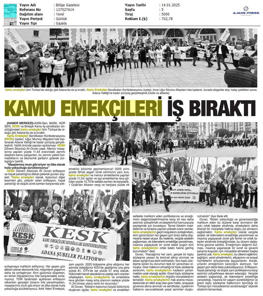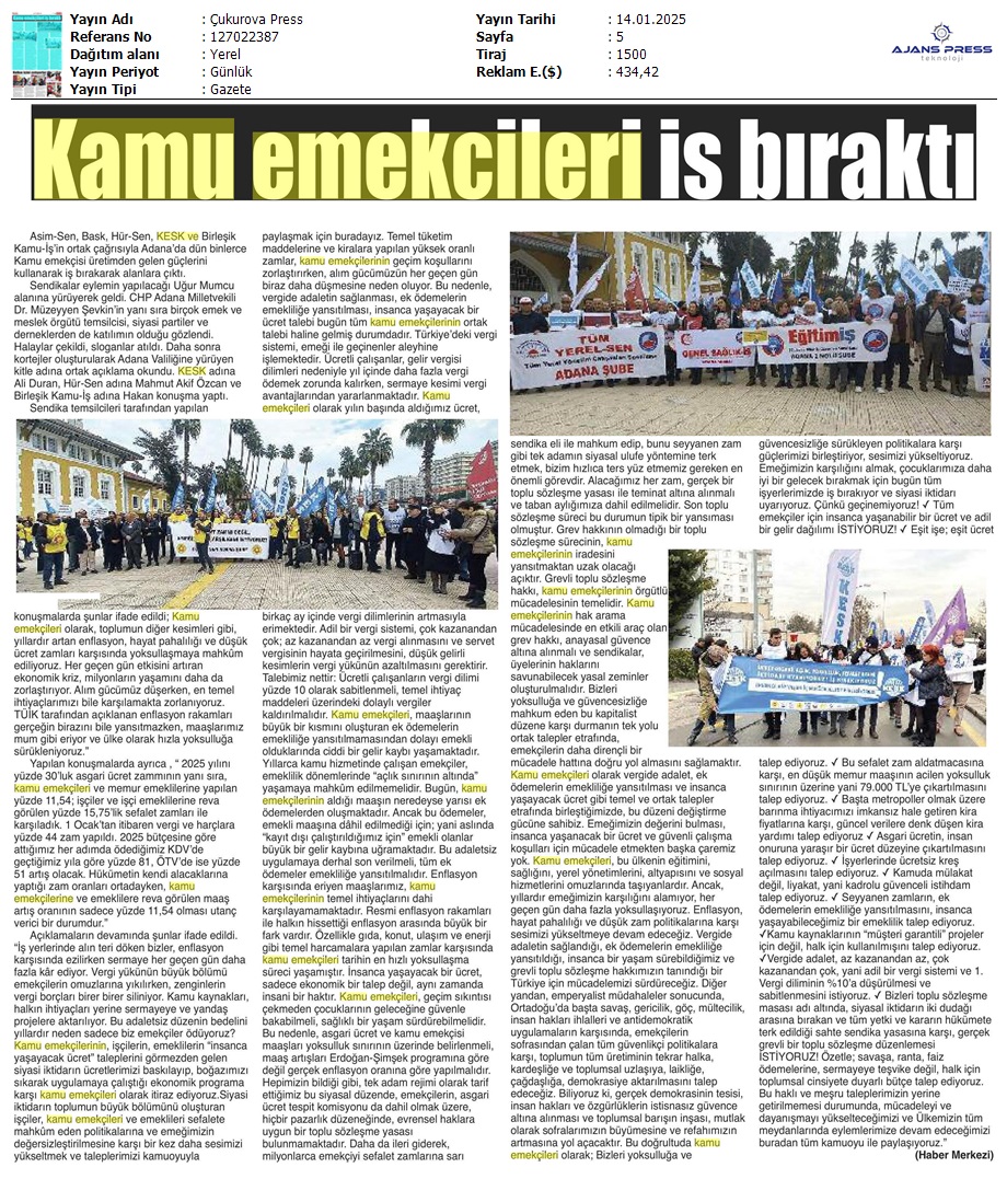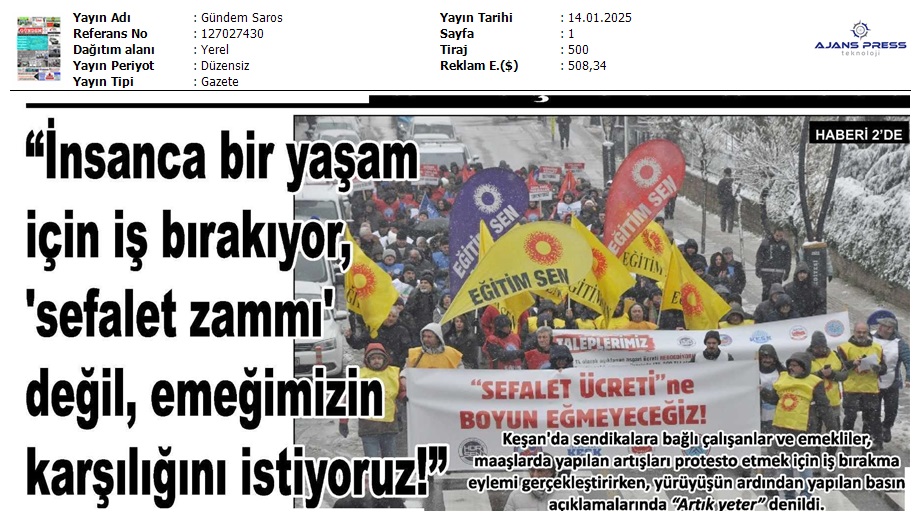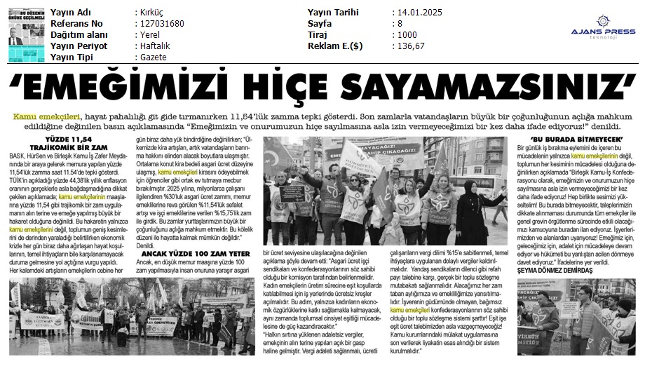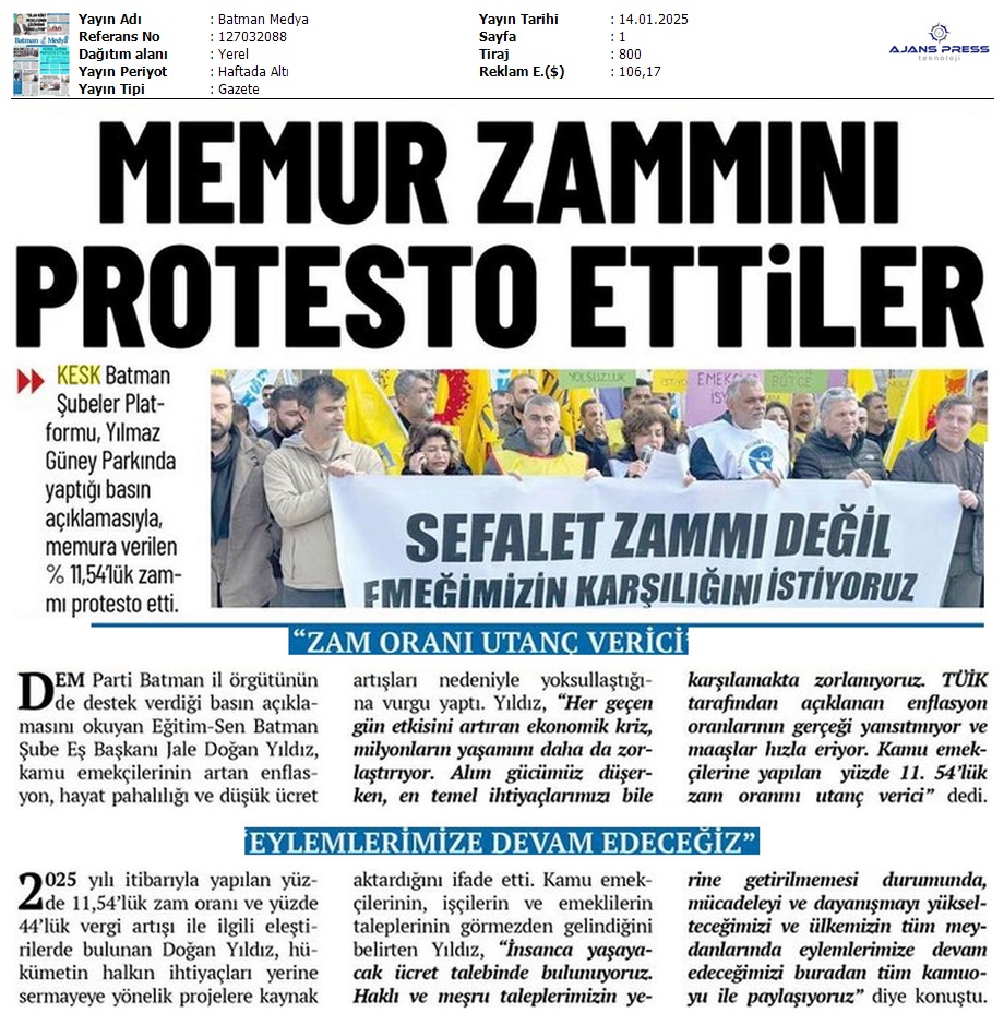 Basında 13 Ocak İş Bırakma Grevimizi