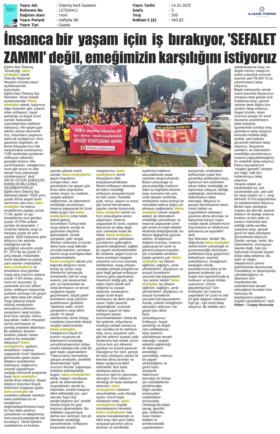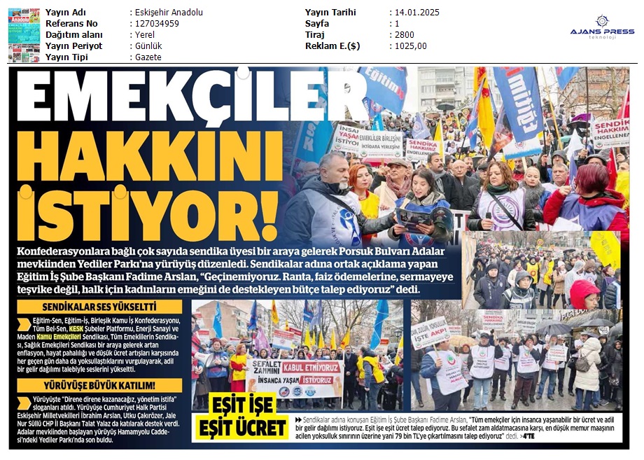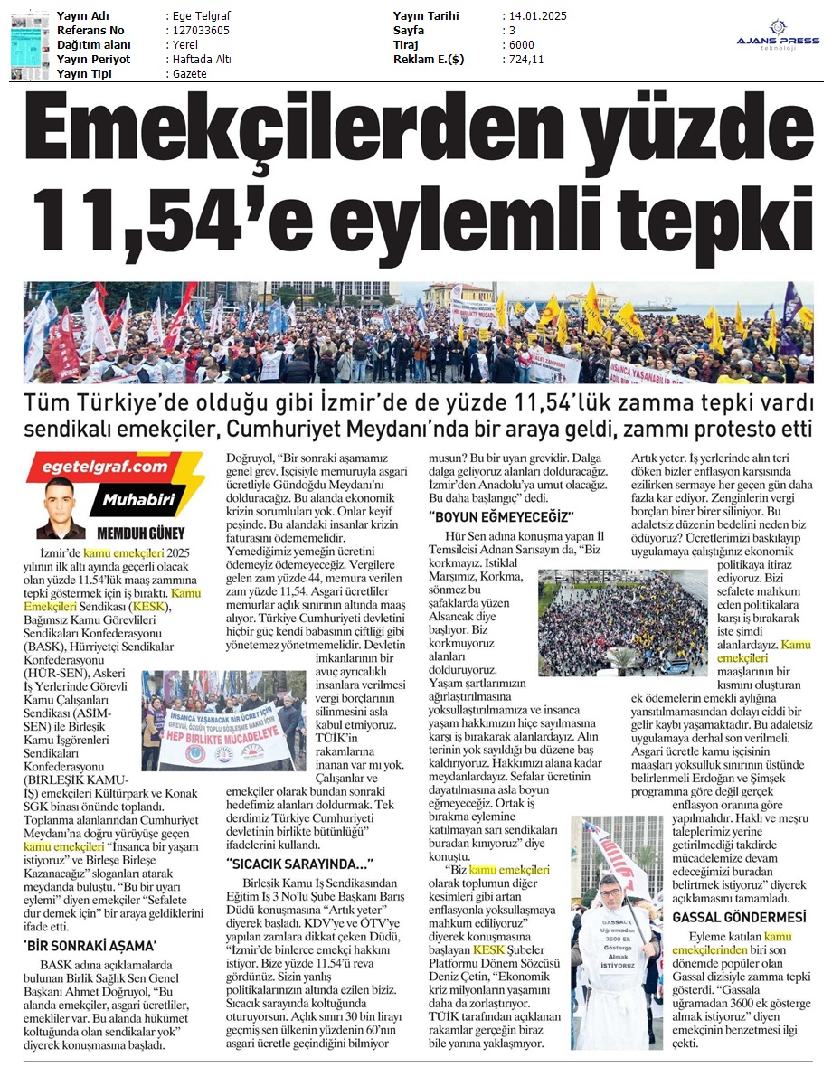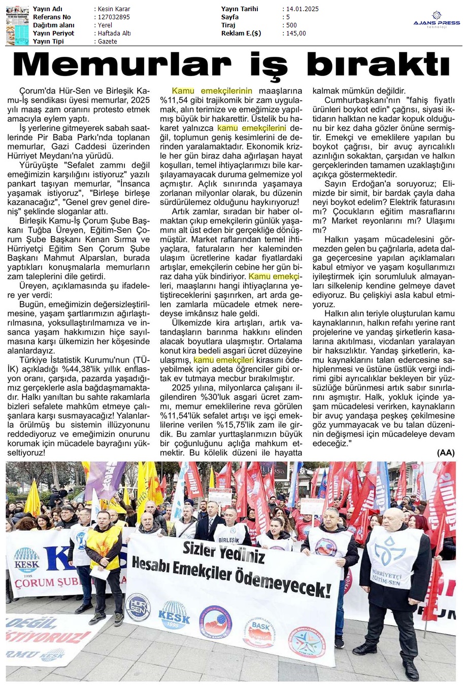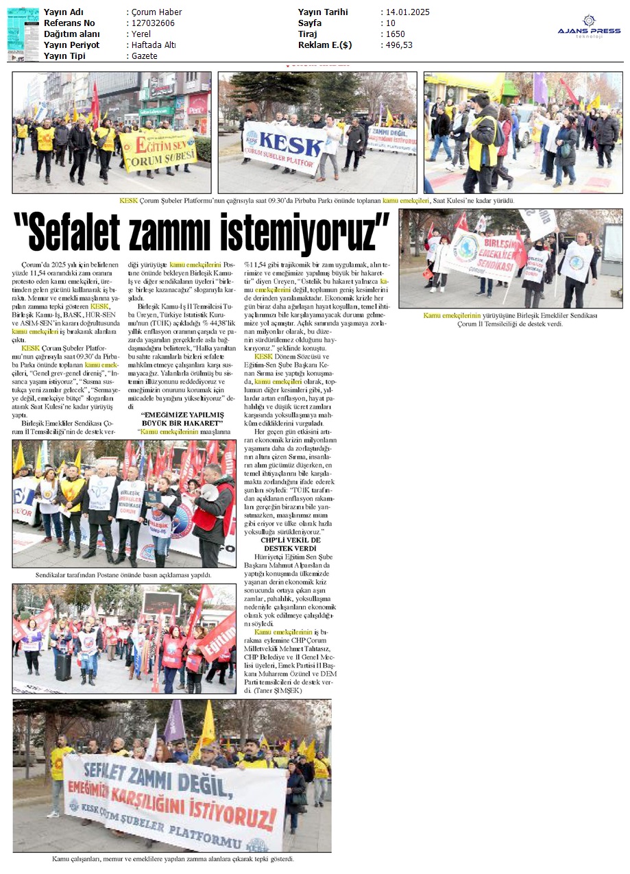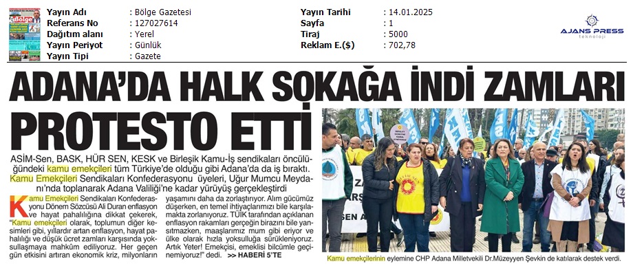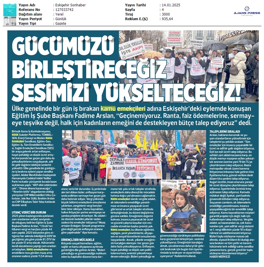 Basında 13 Ocak İş Bırakma Grevimizi