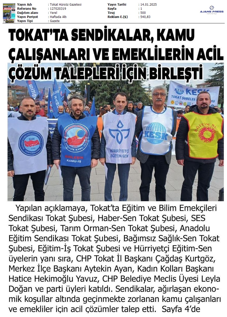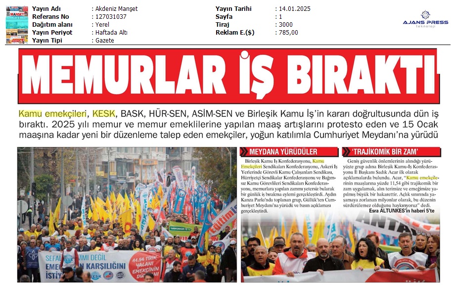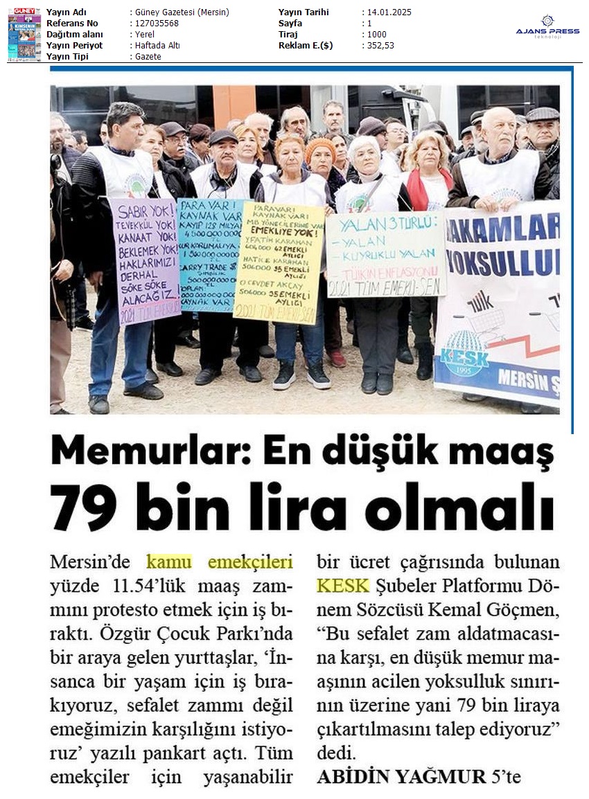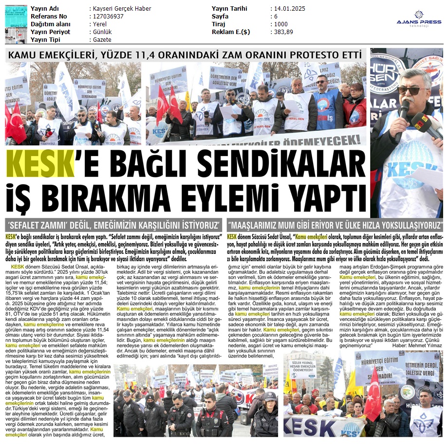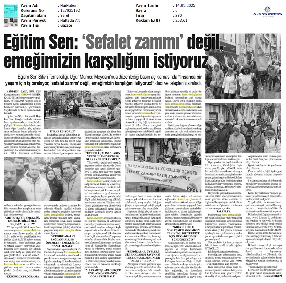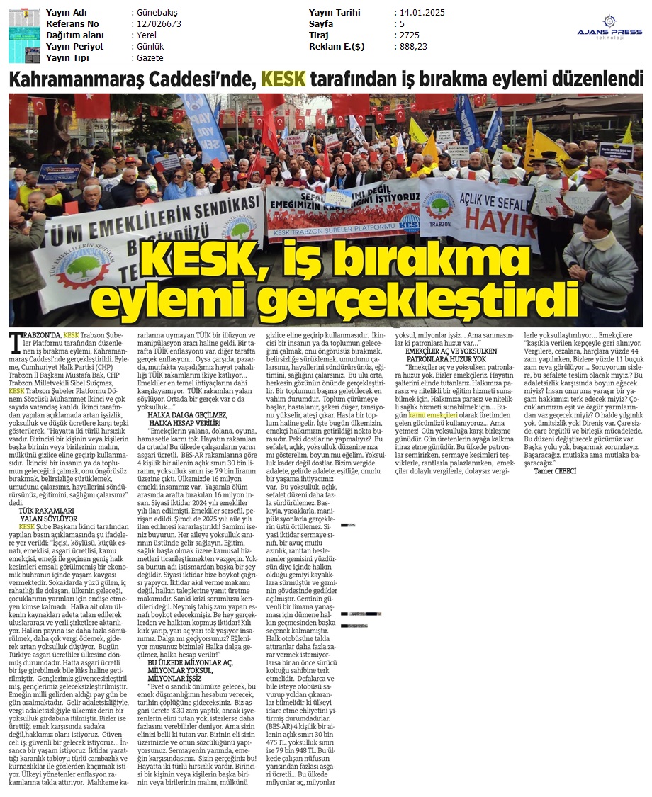 Basında 13 Ocak İş Bırakma Grevimizi