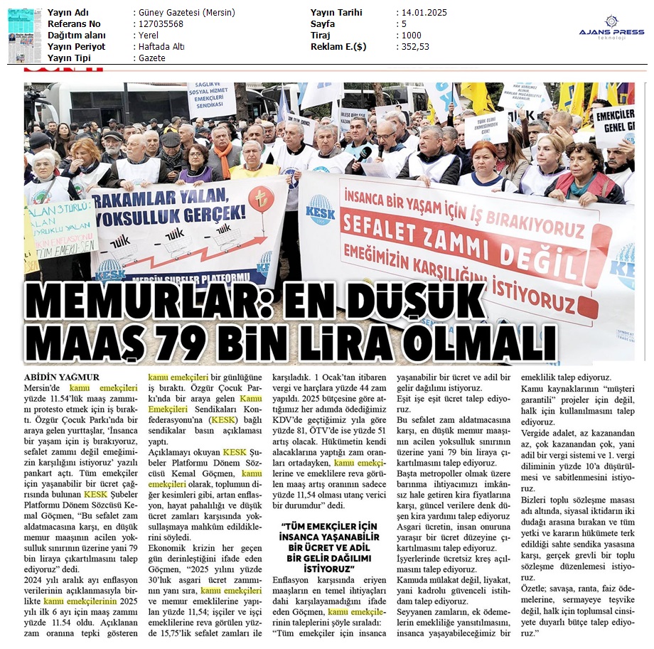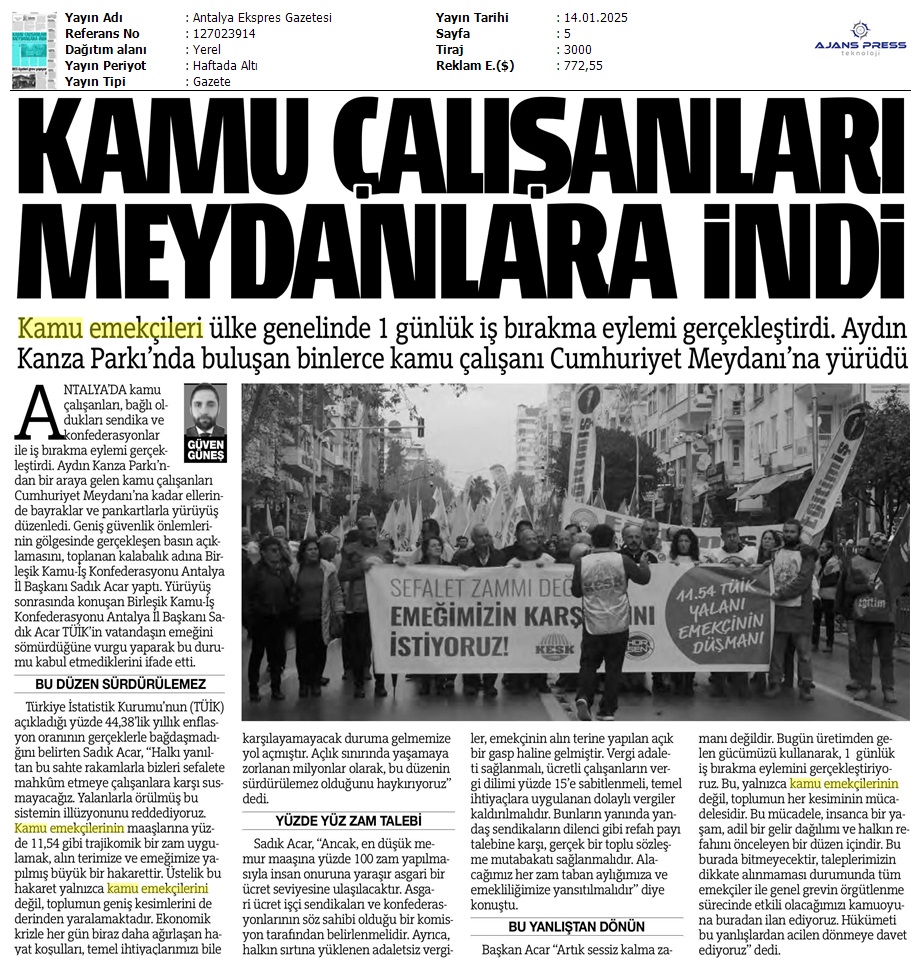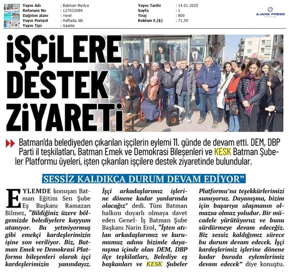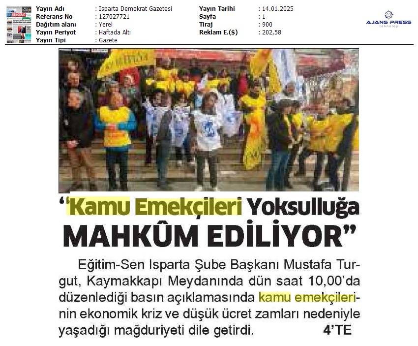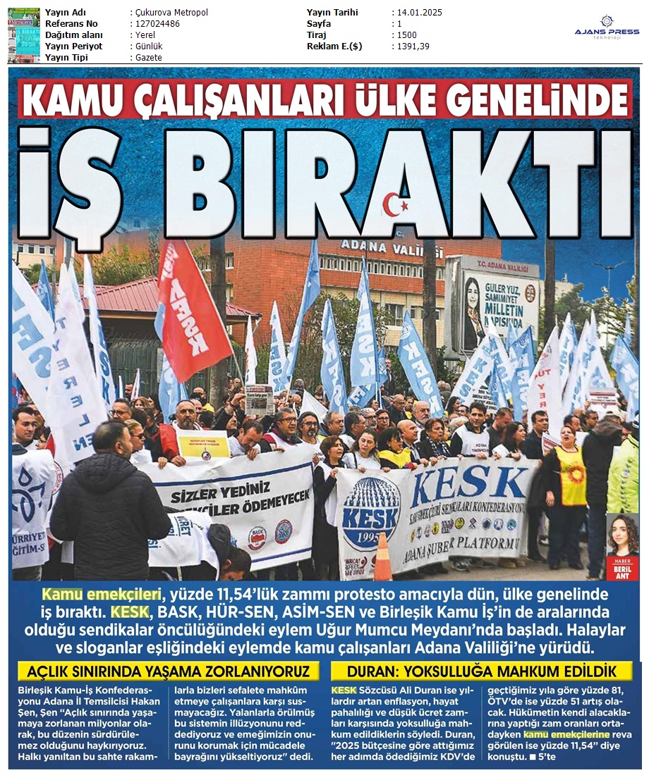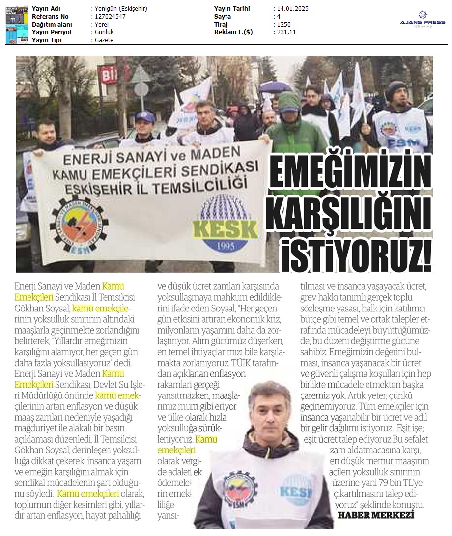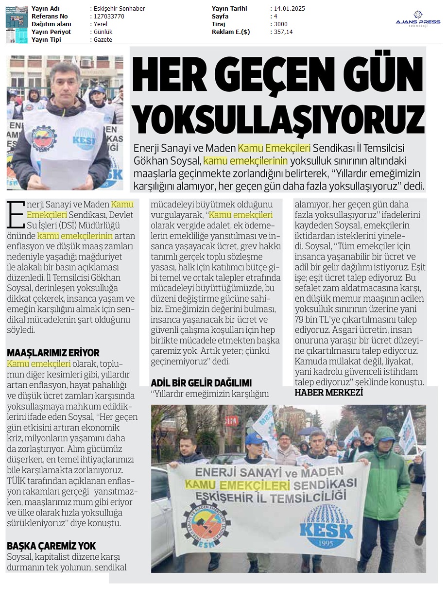 Basında 13 Ocak İş Bırakma Grevimizi