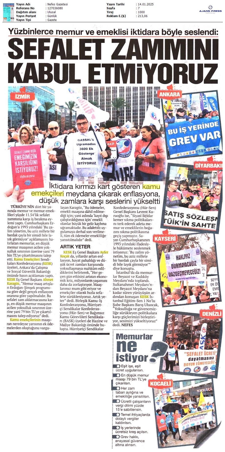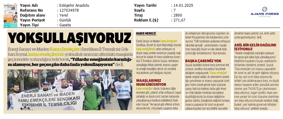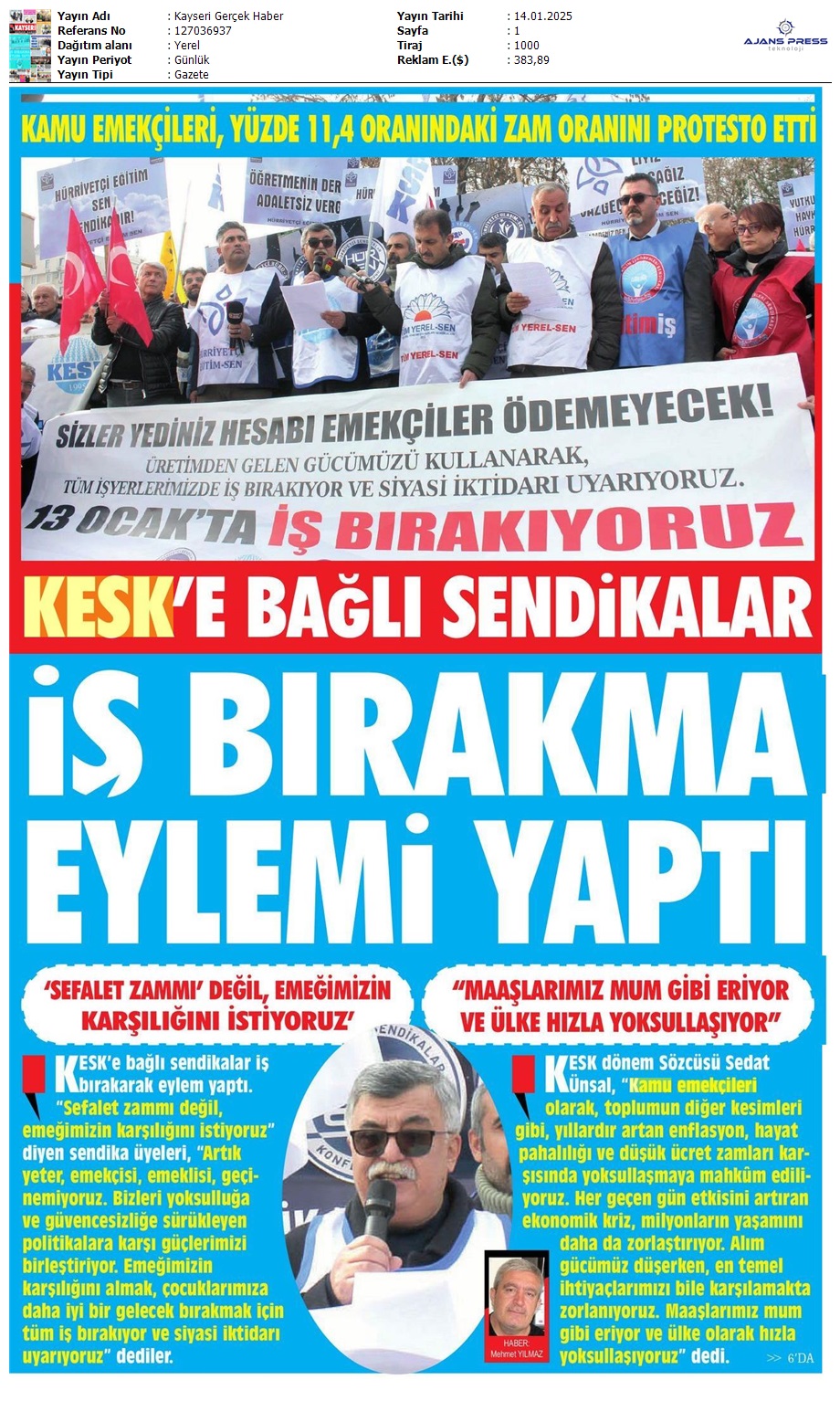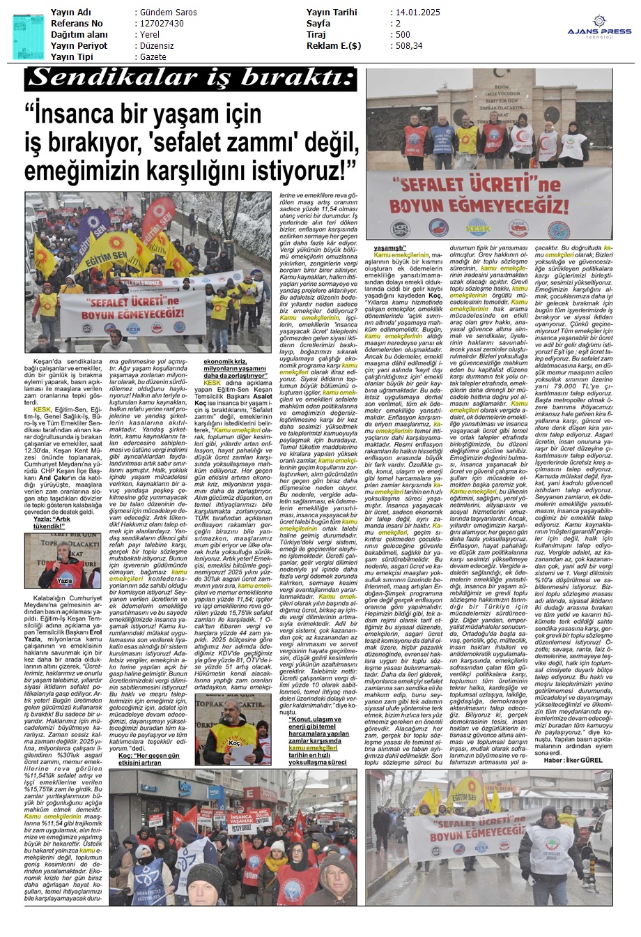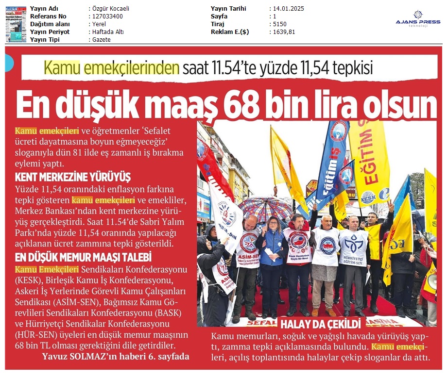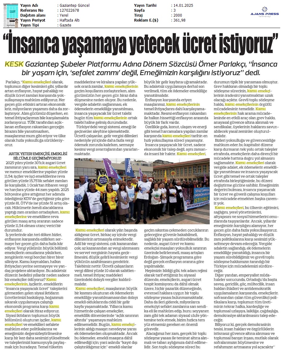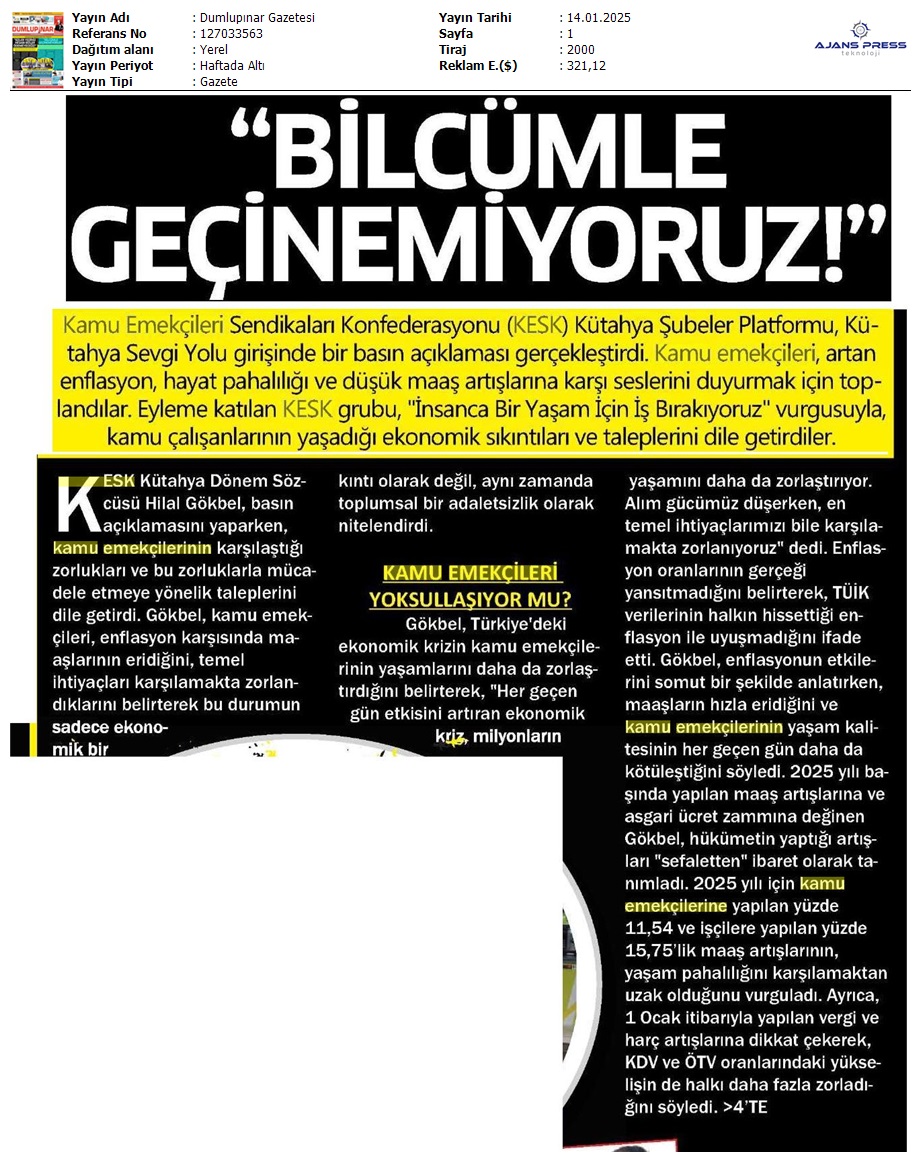 Basında 13 Ocak İş Bırakma Grevimizi
