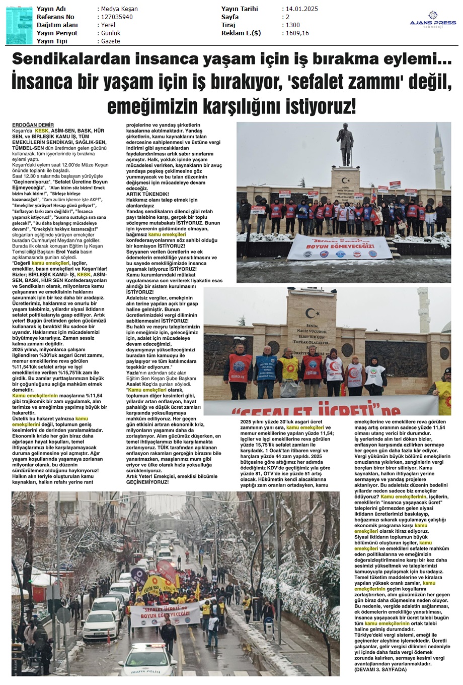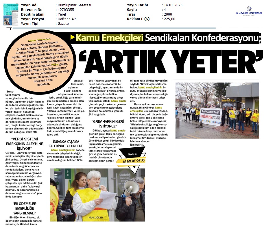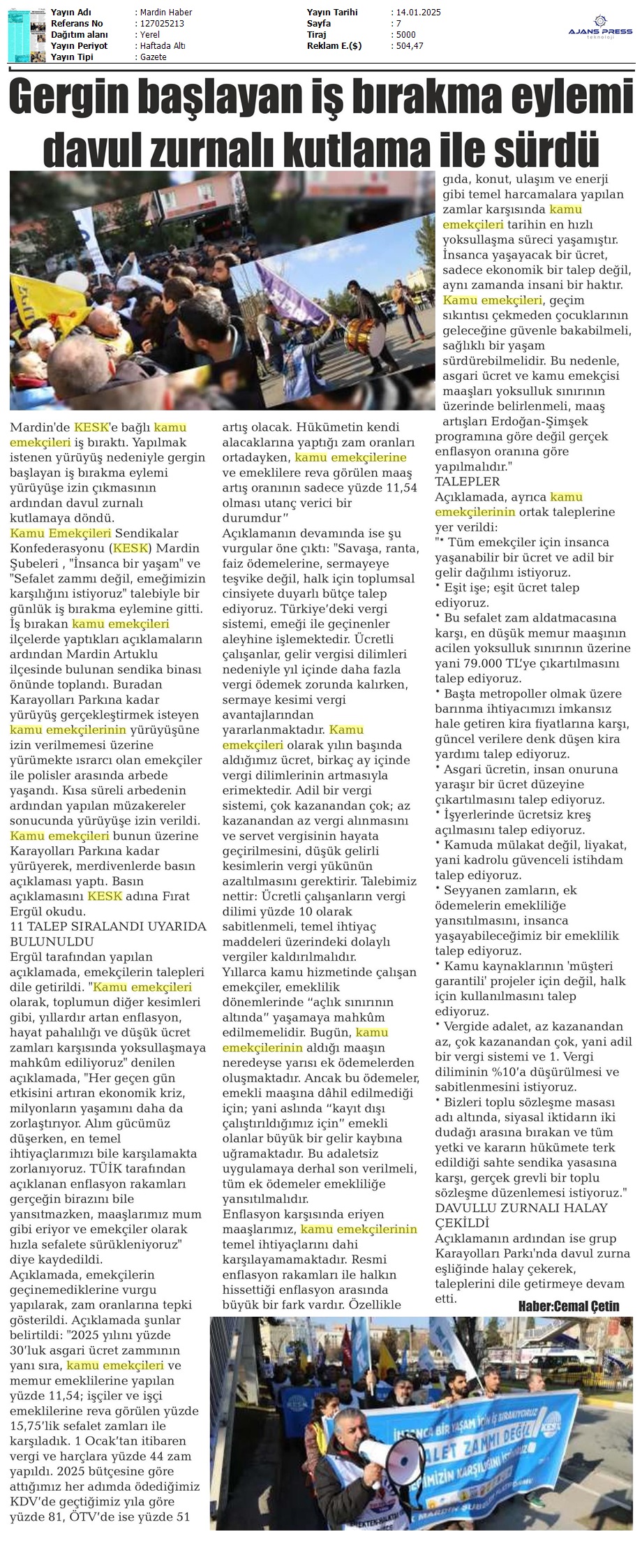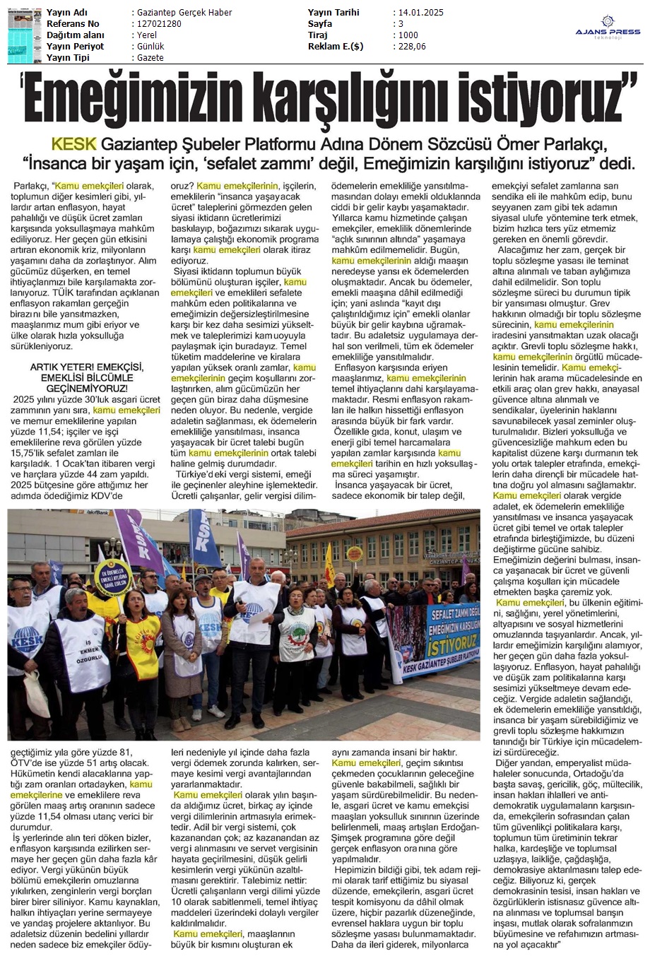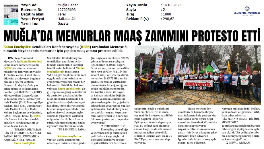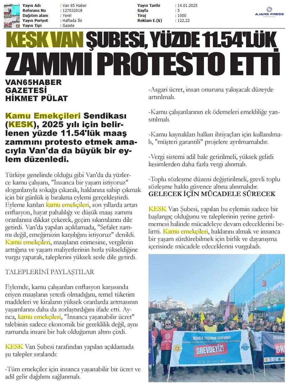 Basında 13 Ocak İş Bırakma Grevimizi