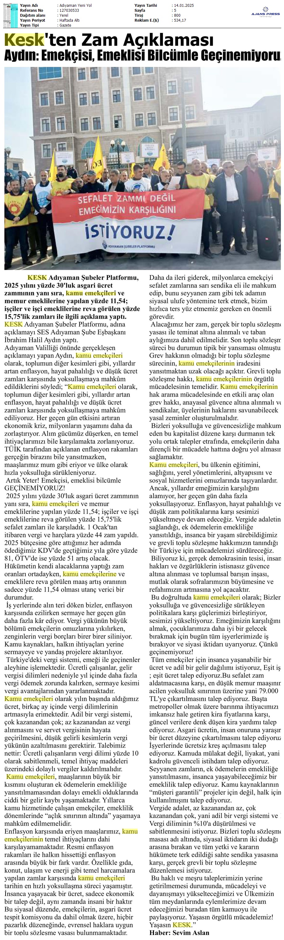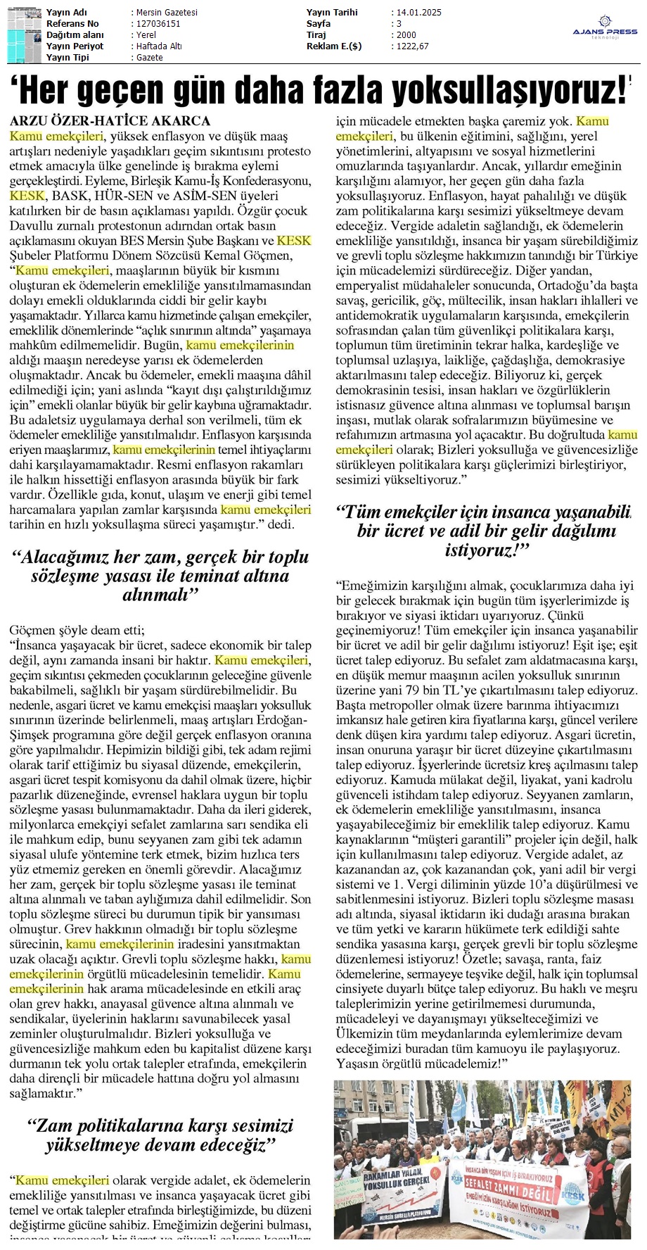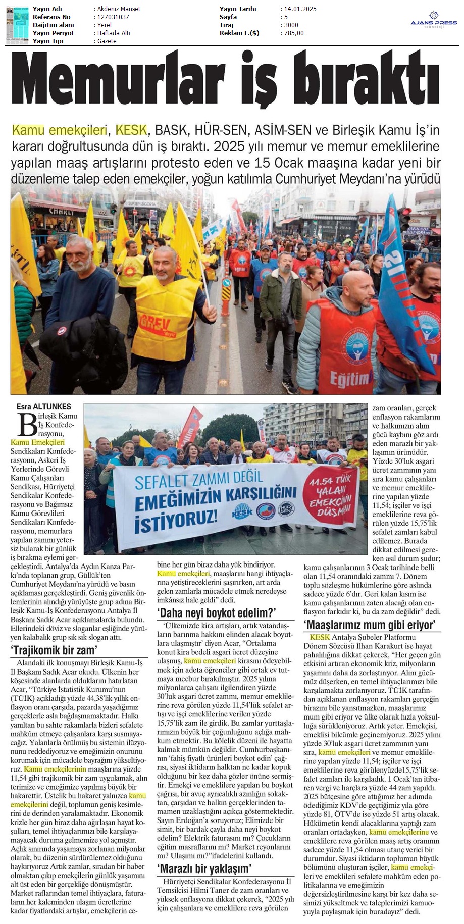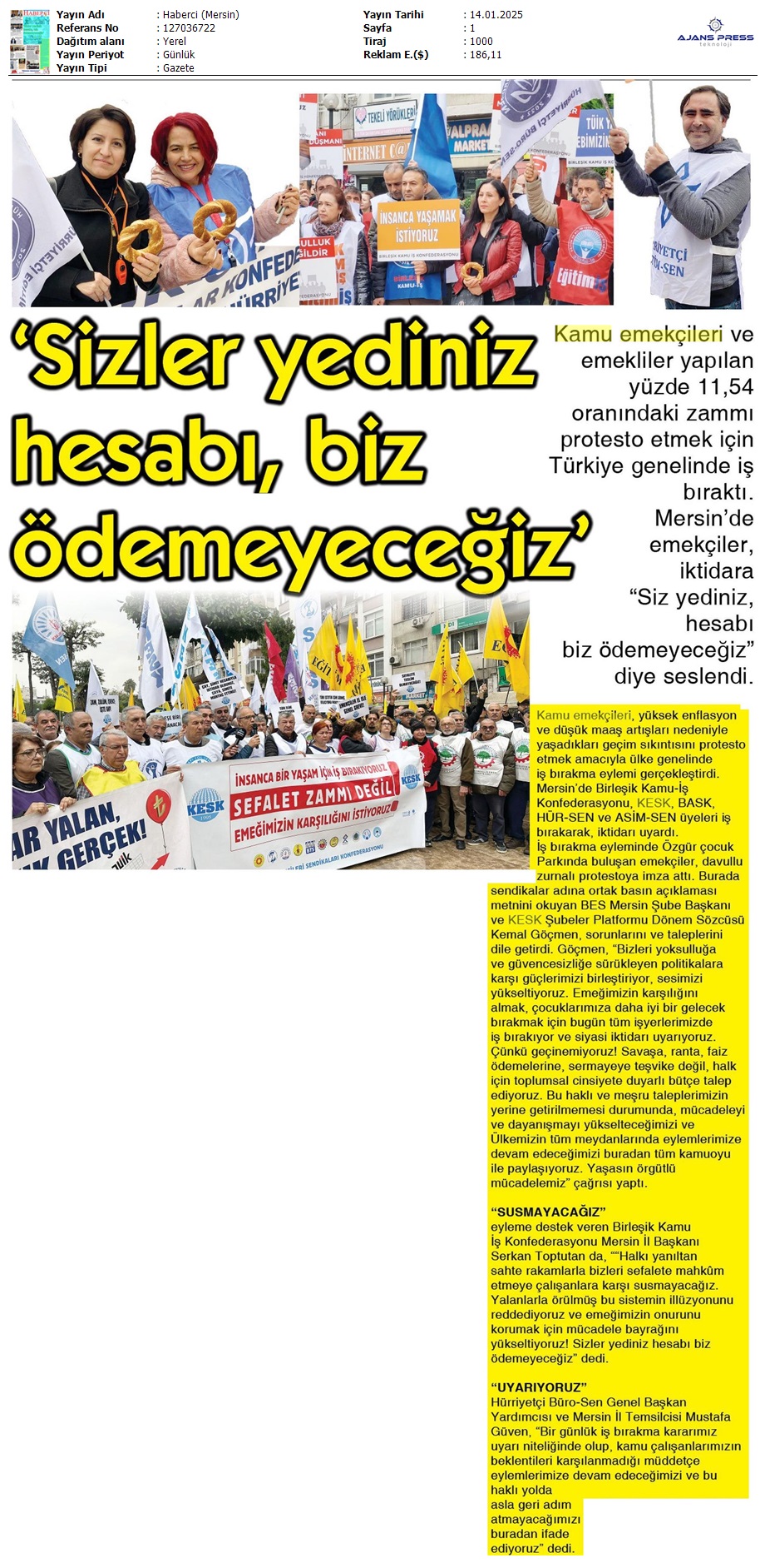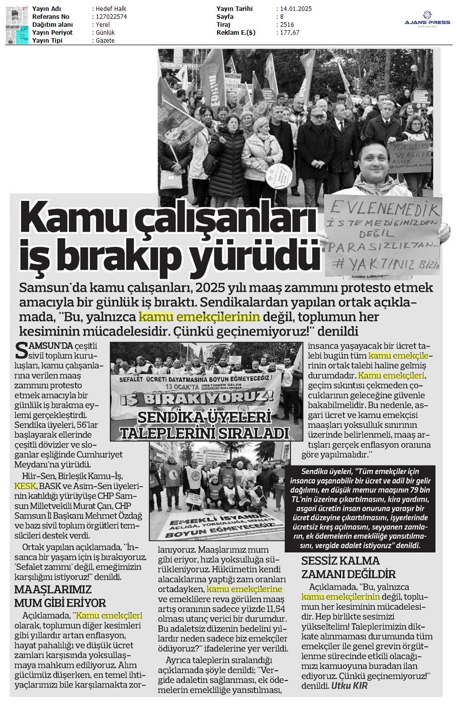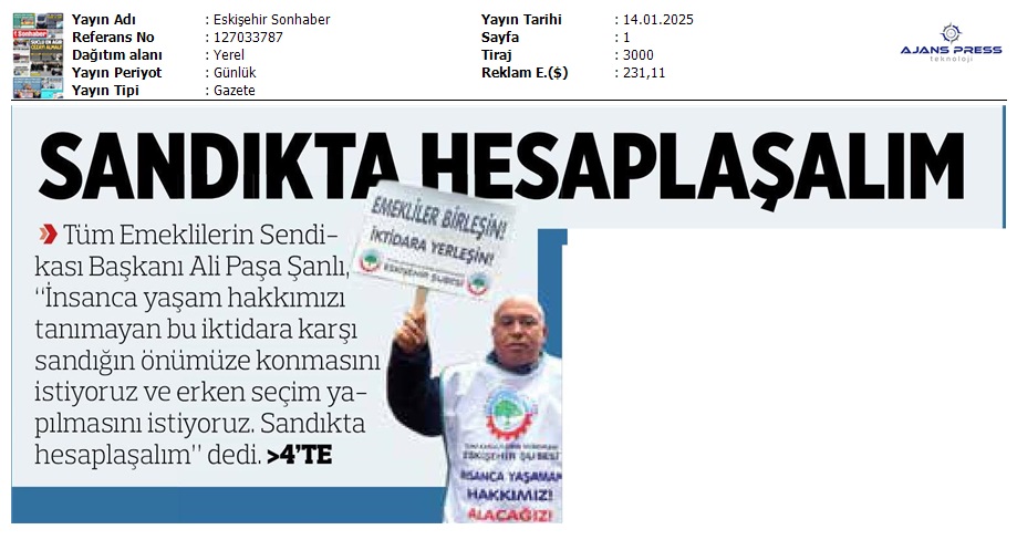 Basında 13 Ocak İş Bırakma Grevimizi