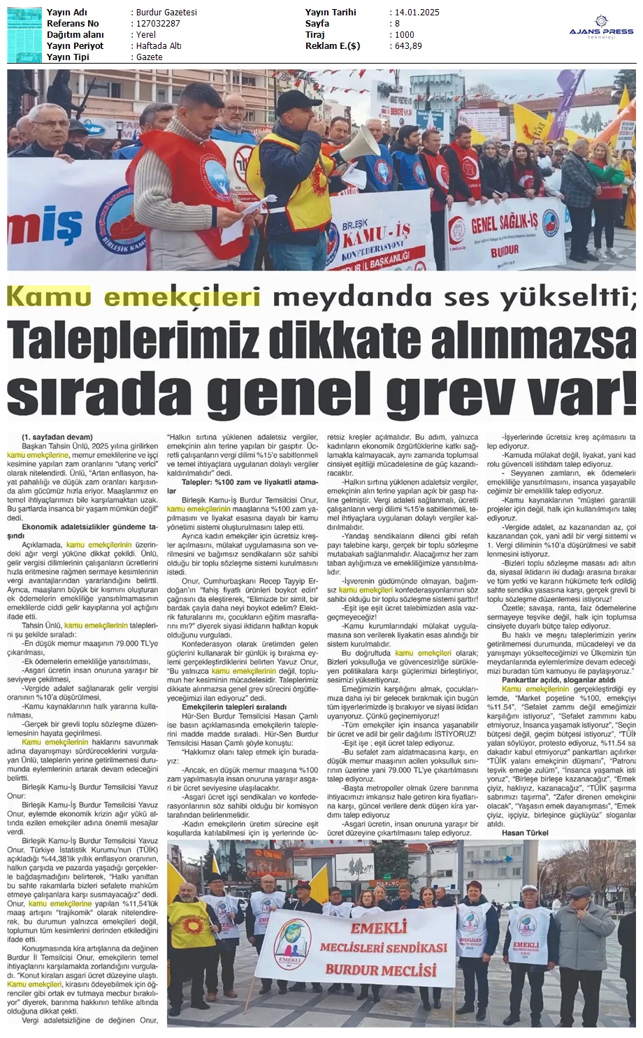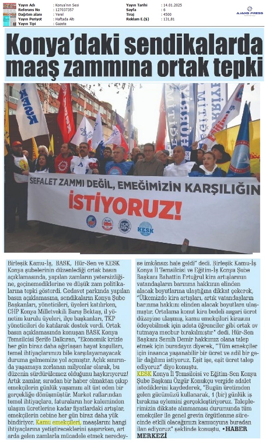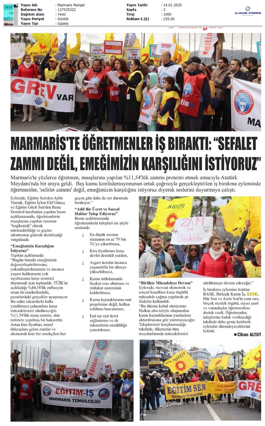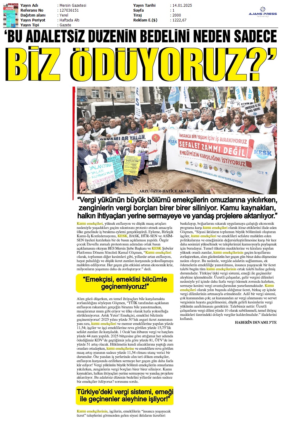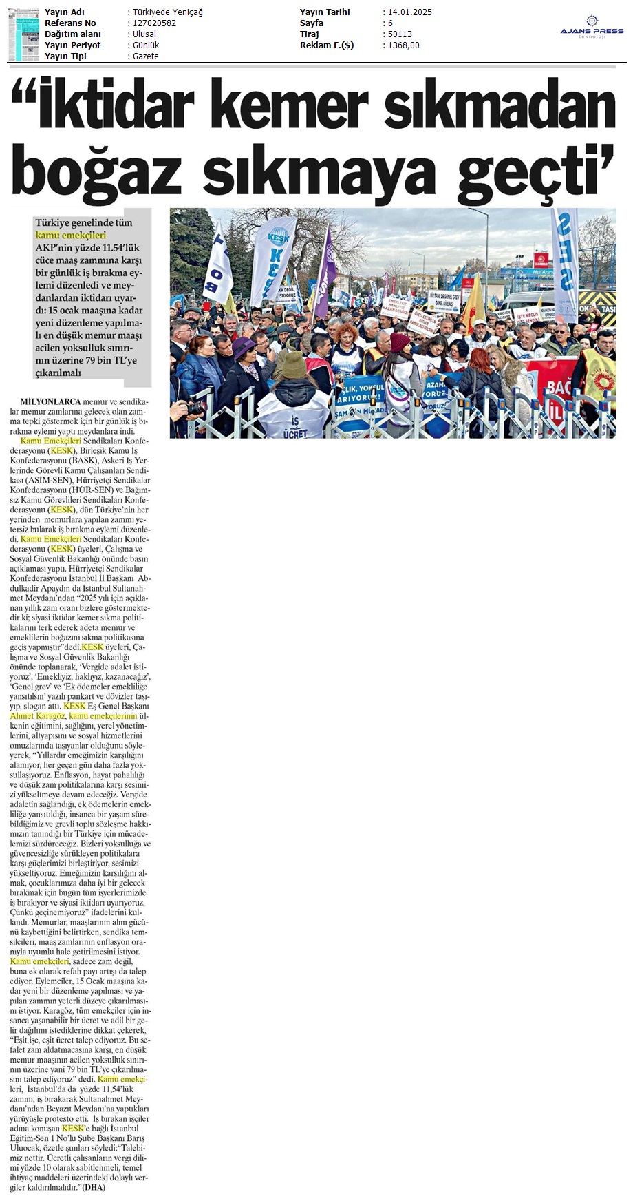 Basında 13 Ocak İş Bırakma Grevimizi