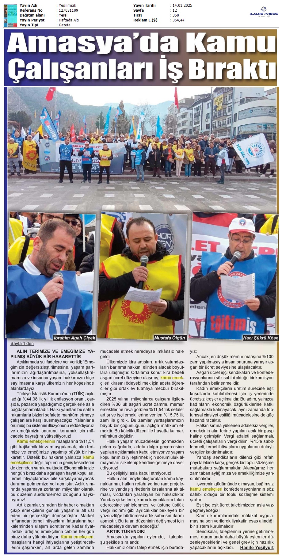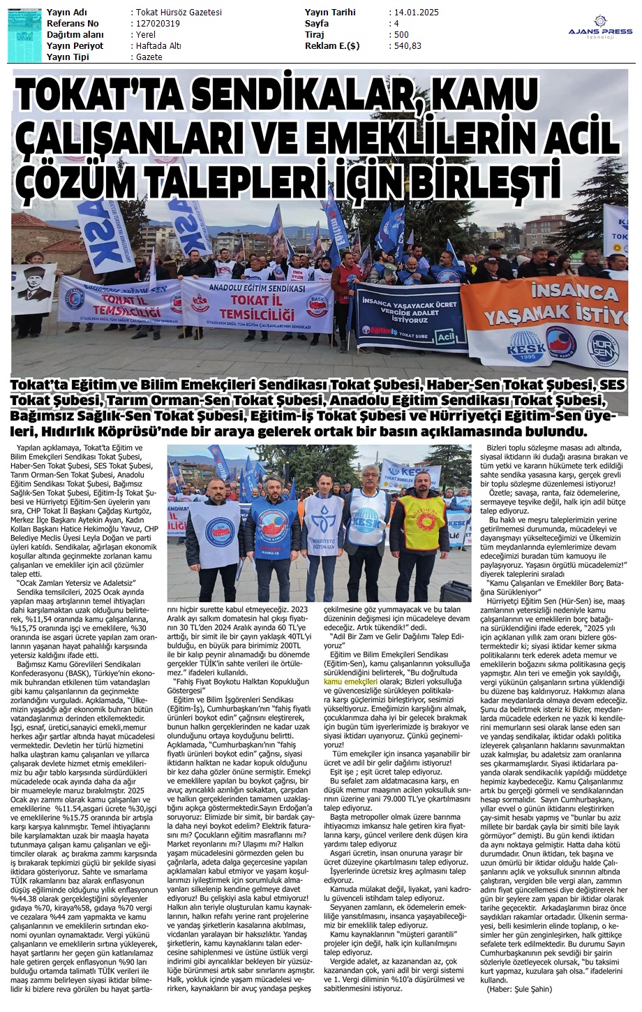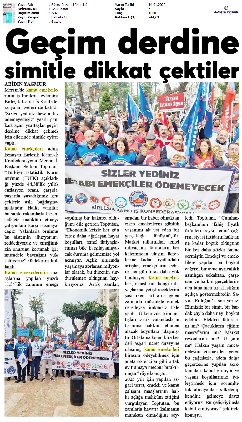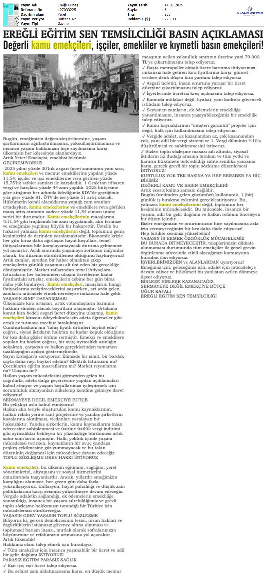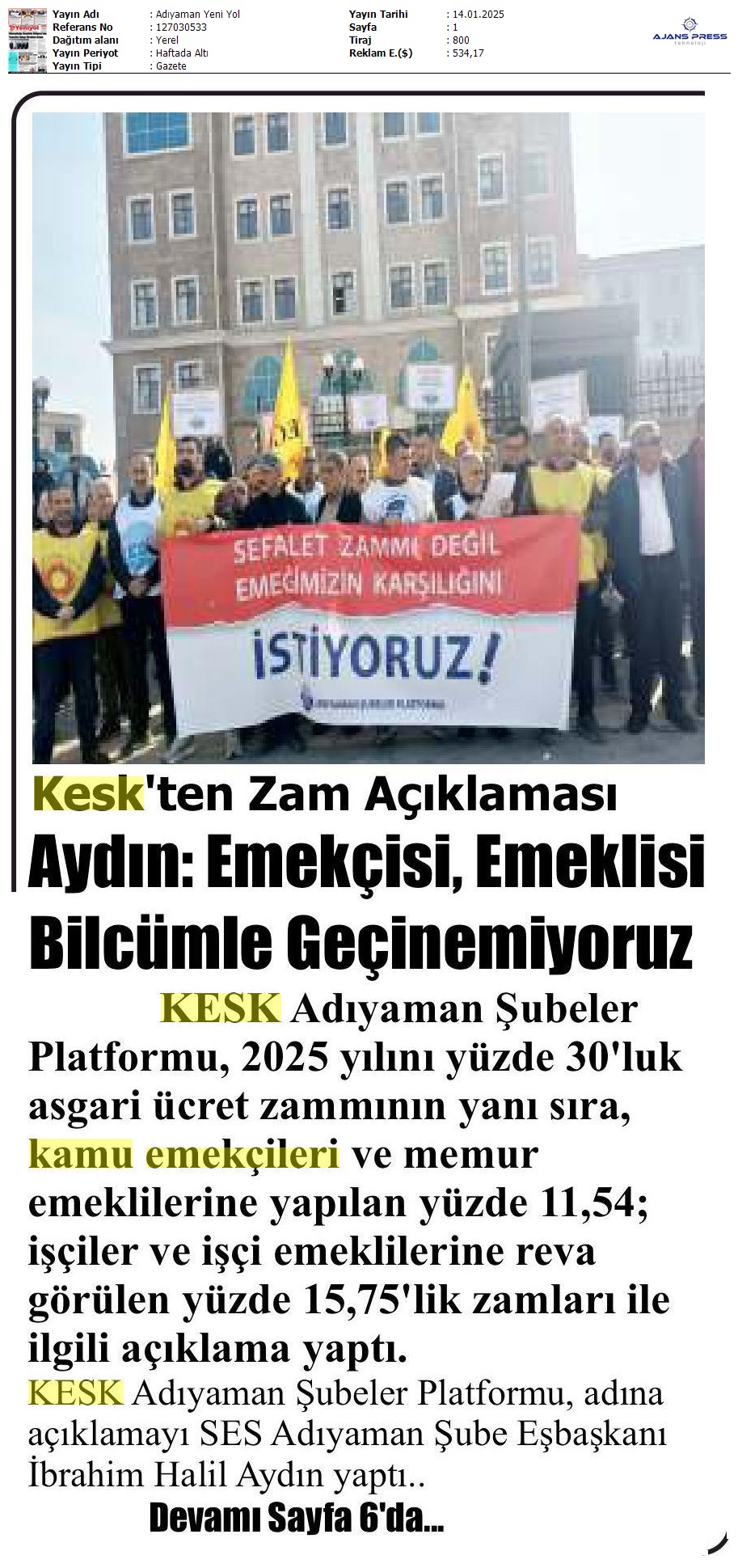 Basında 13 Ocak İş Bırakma Grevimizi