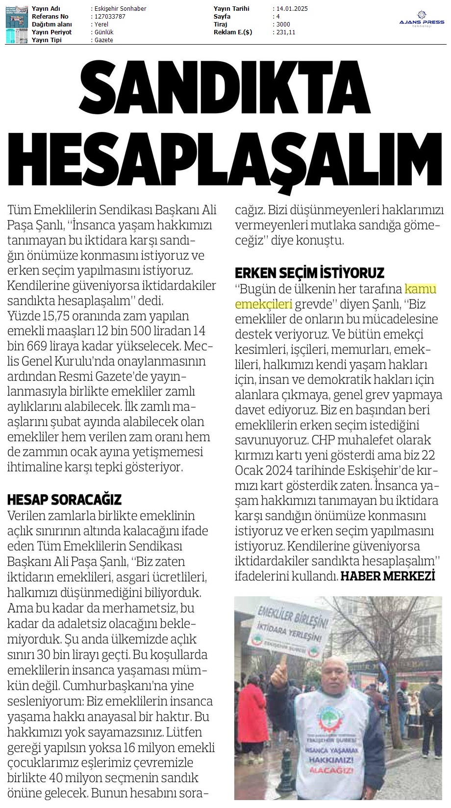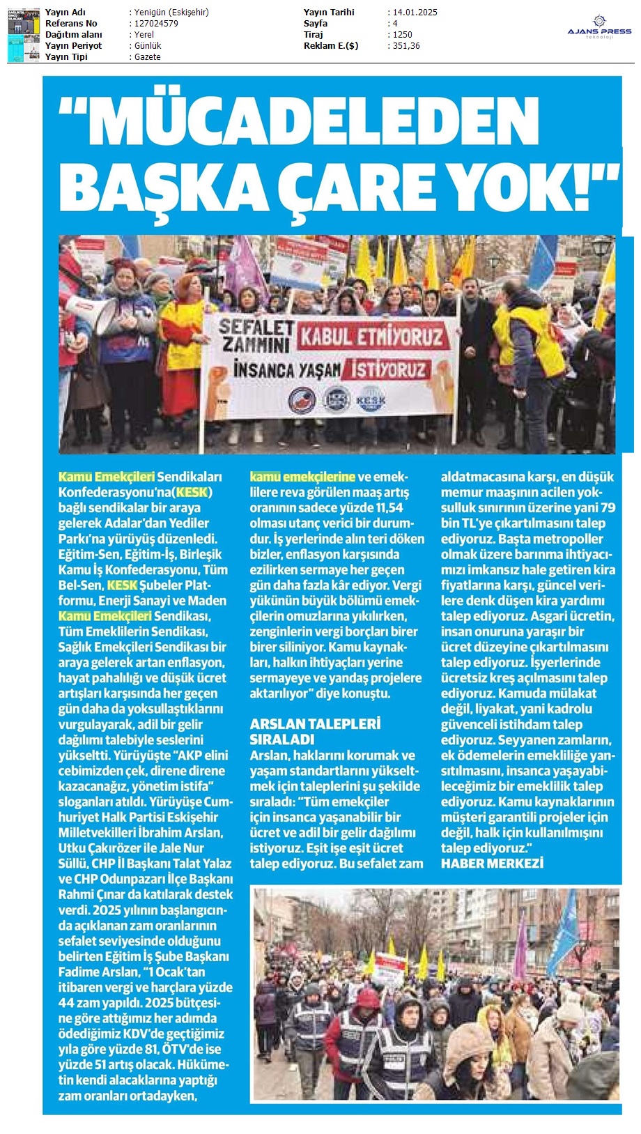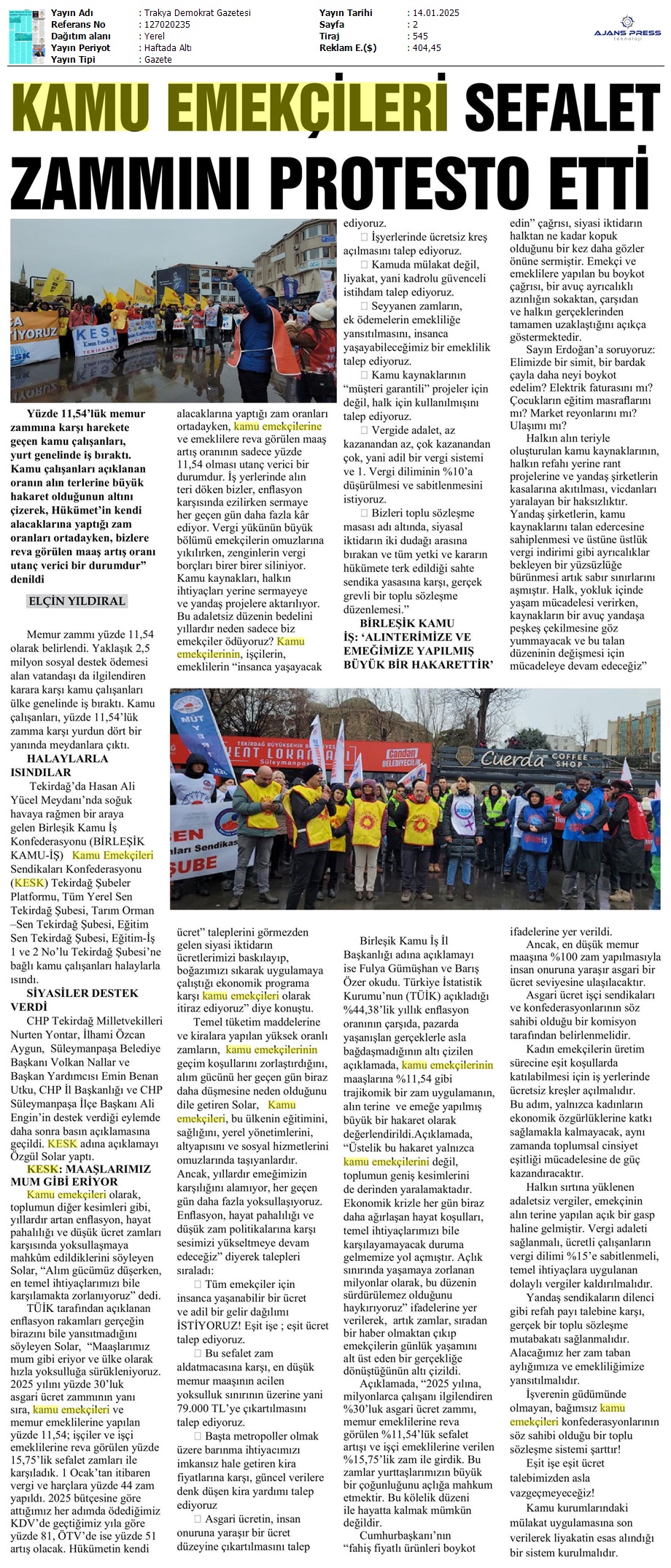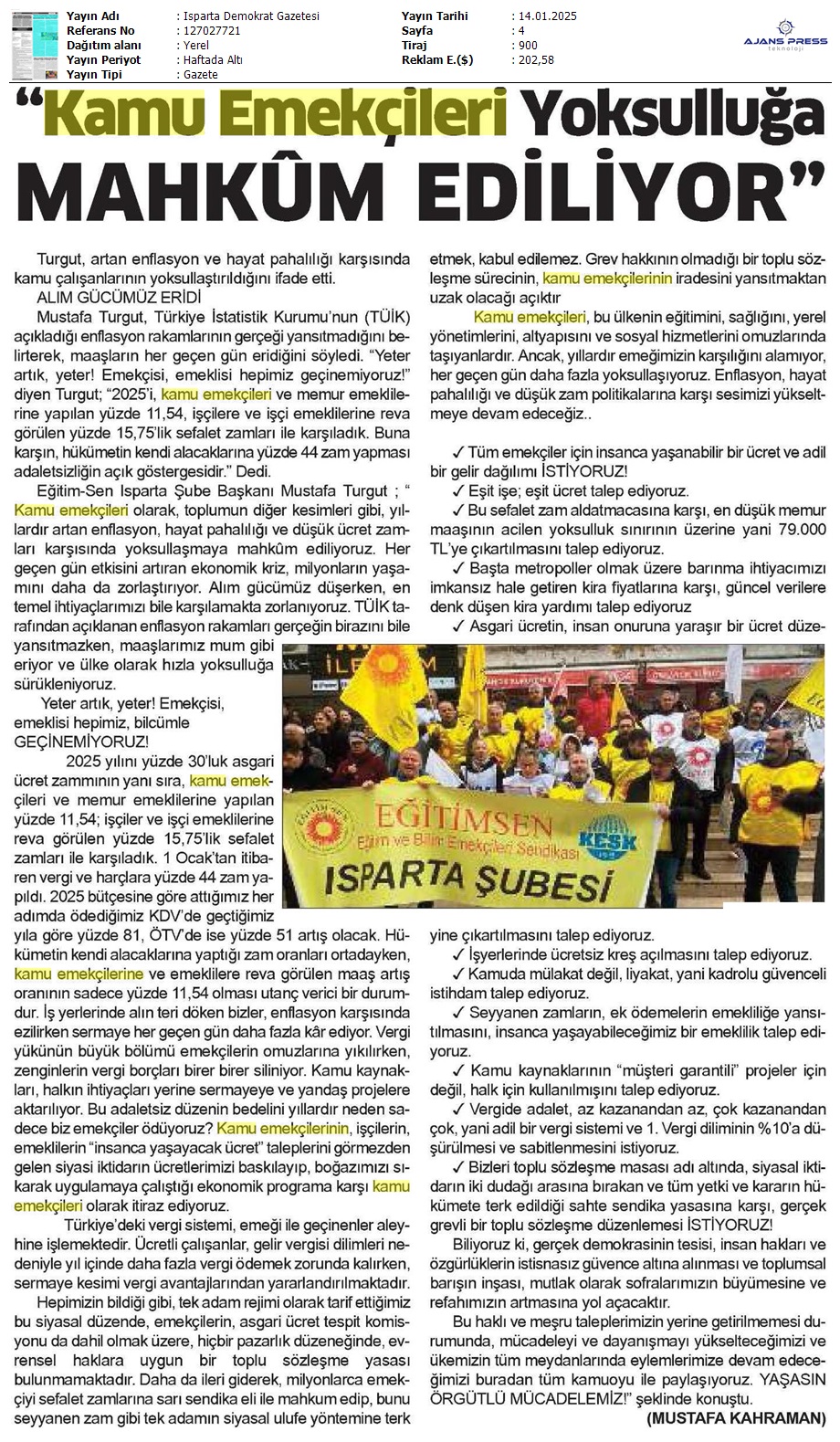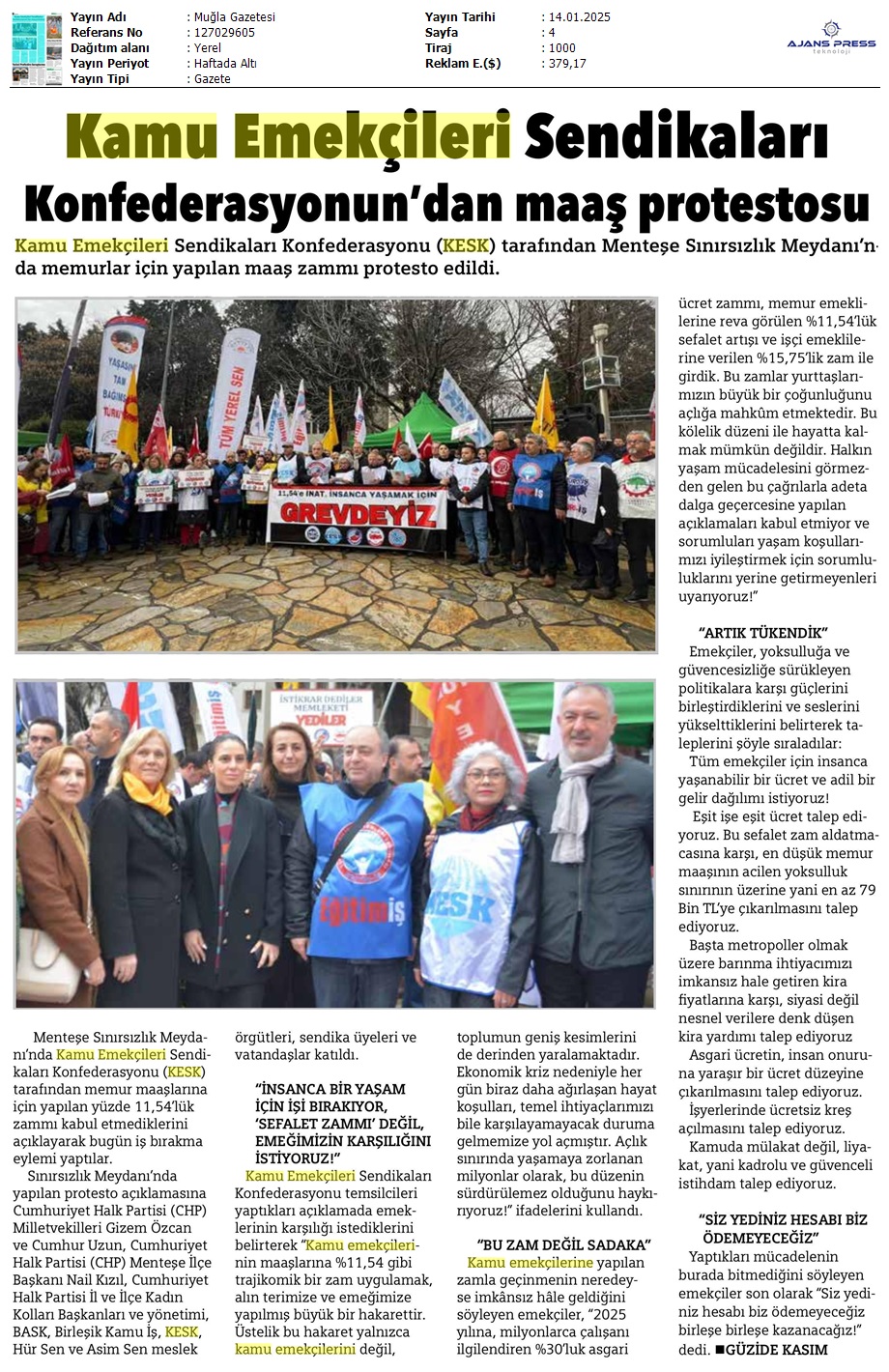 Basında 13 Ocak İş Bırakma Grevimizi