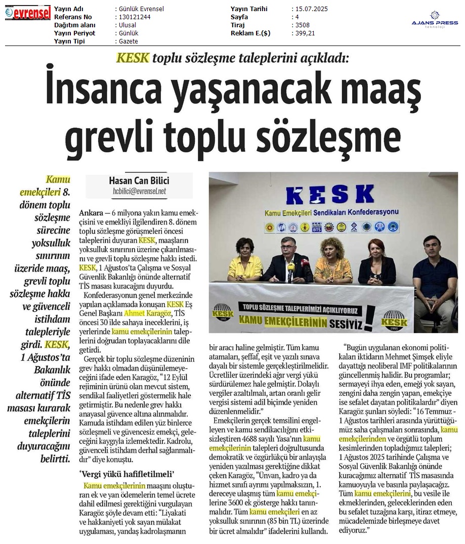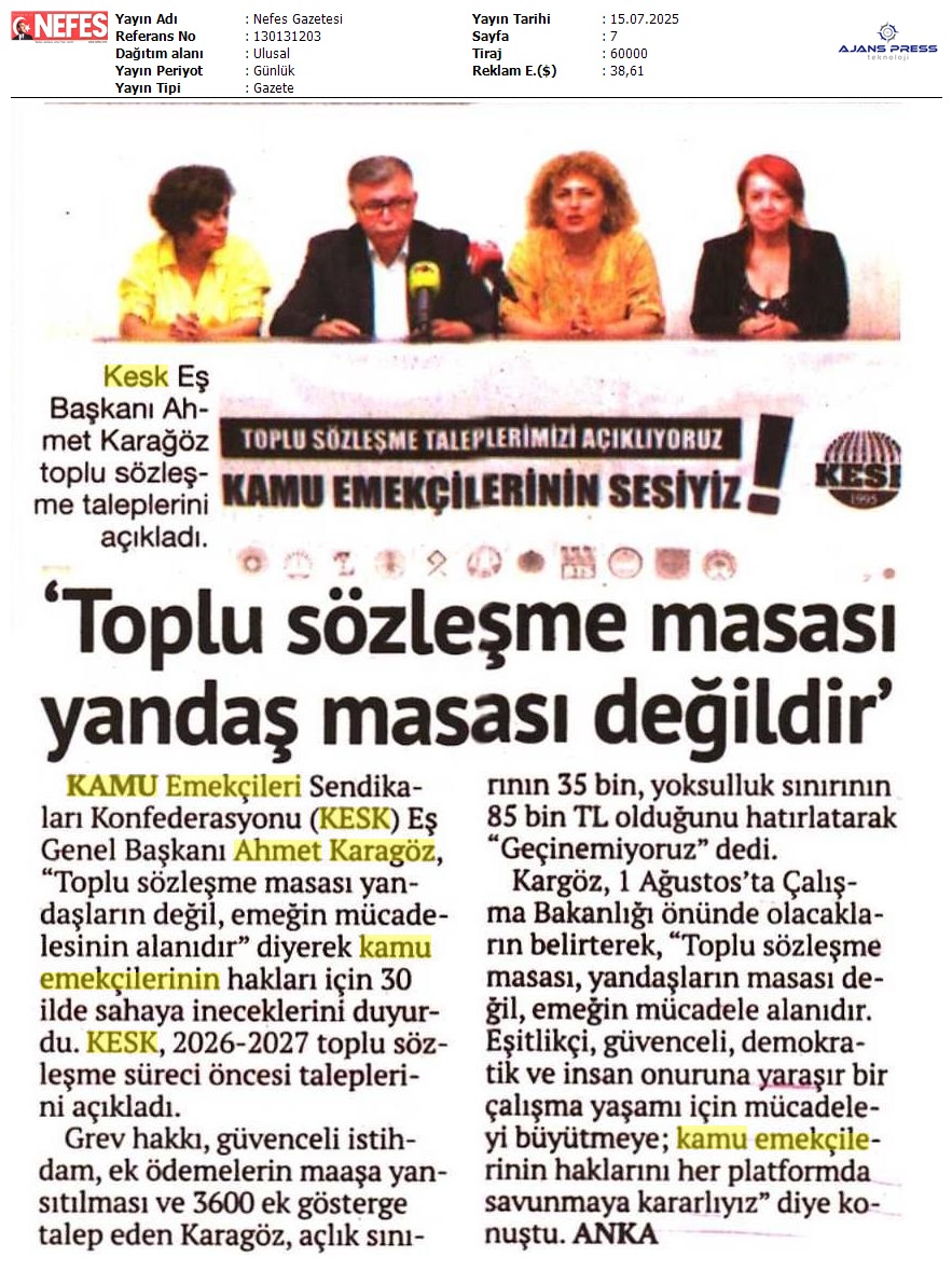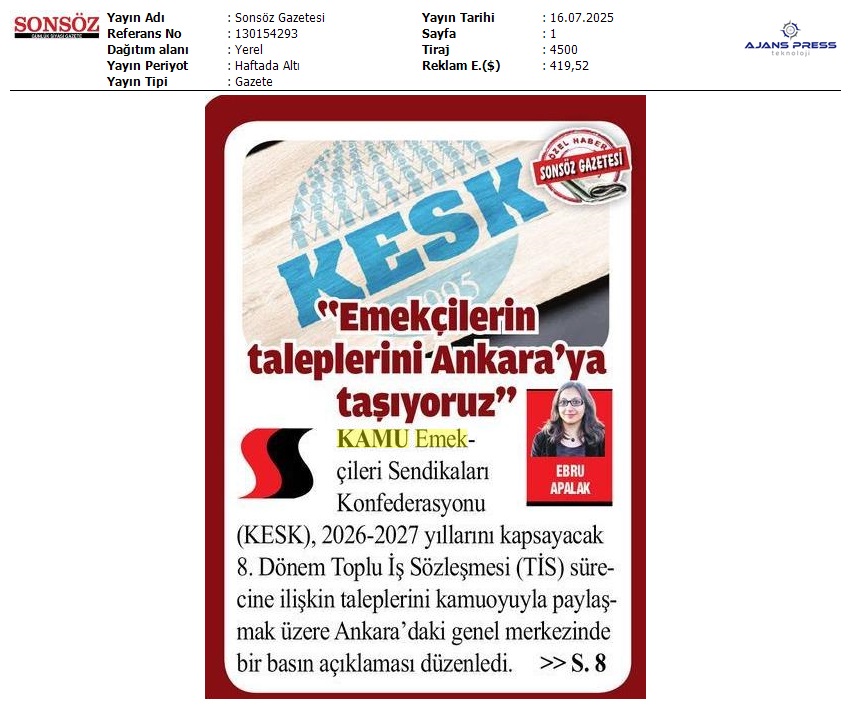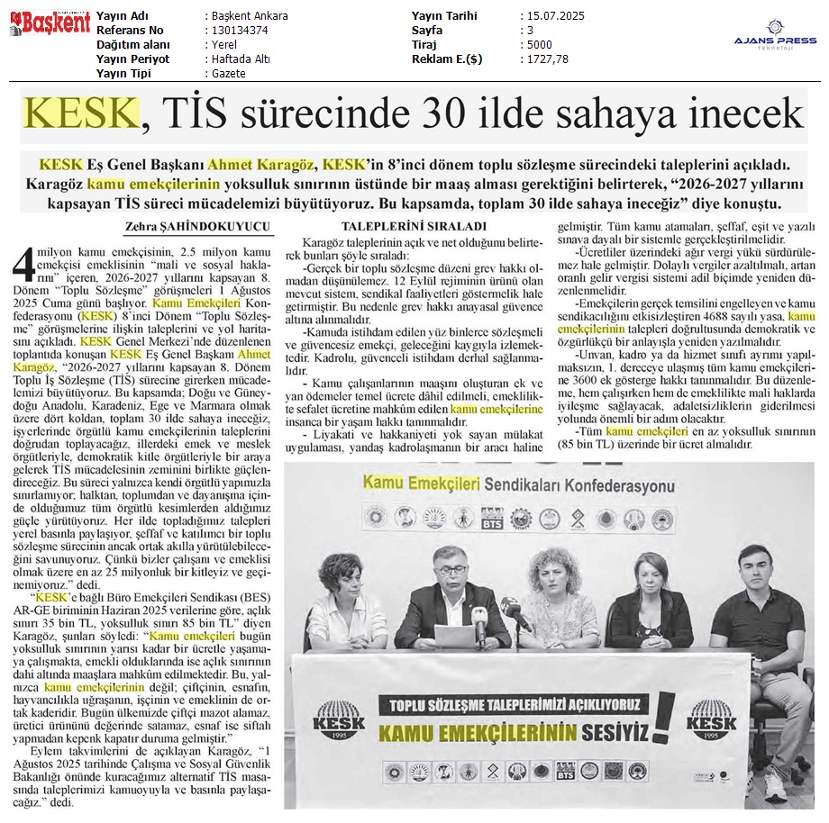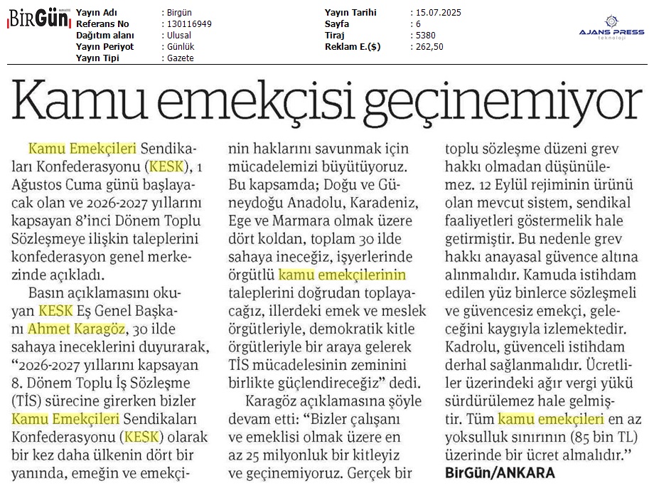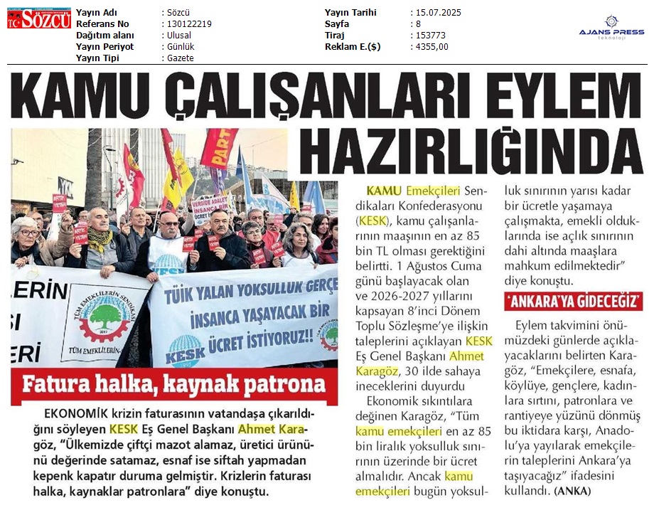 TİS taleplerimiz Gazetelerde: Kamu emekçilerinin sesiyiz!
