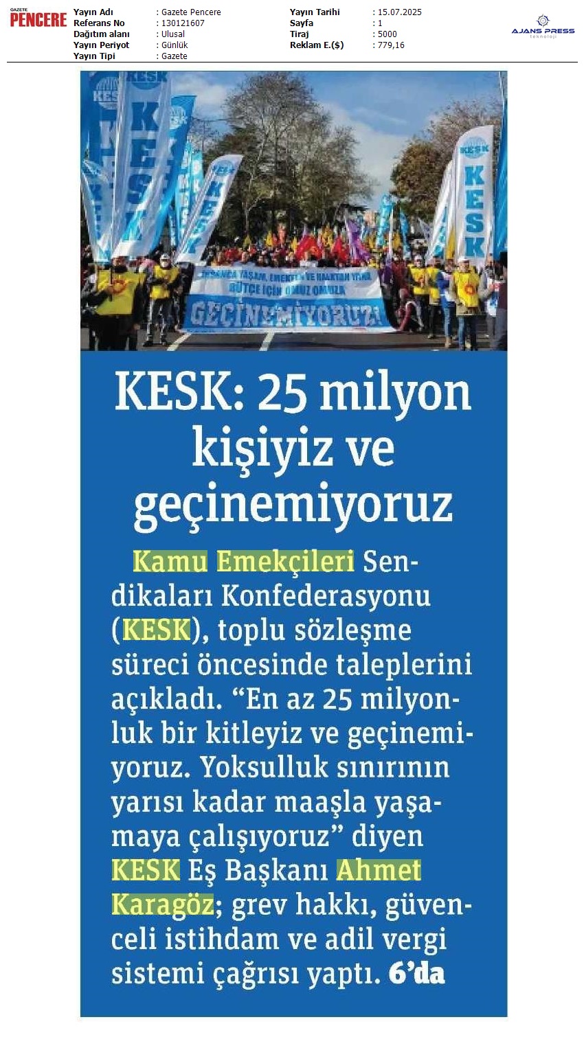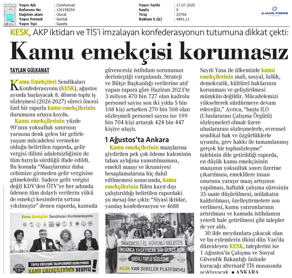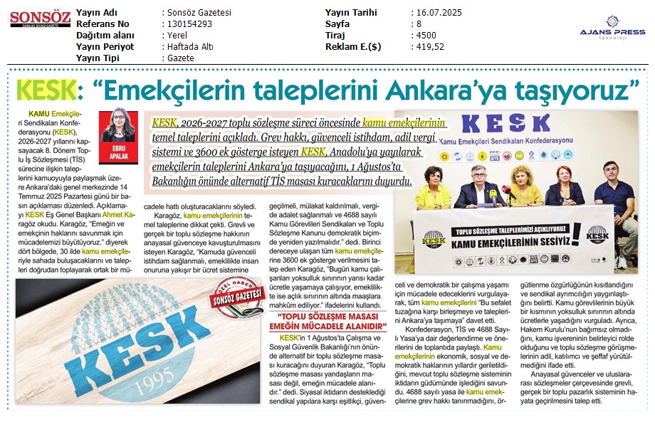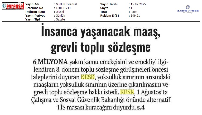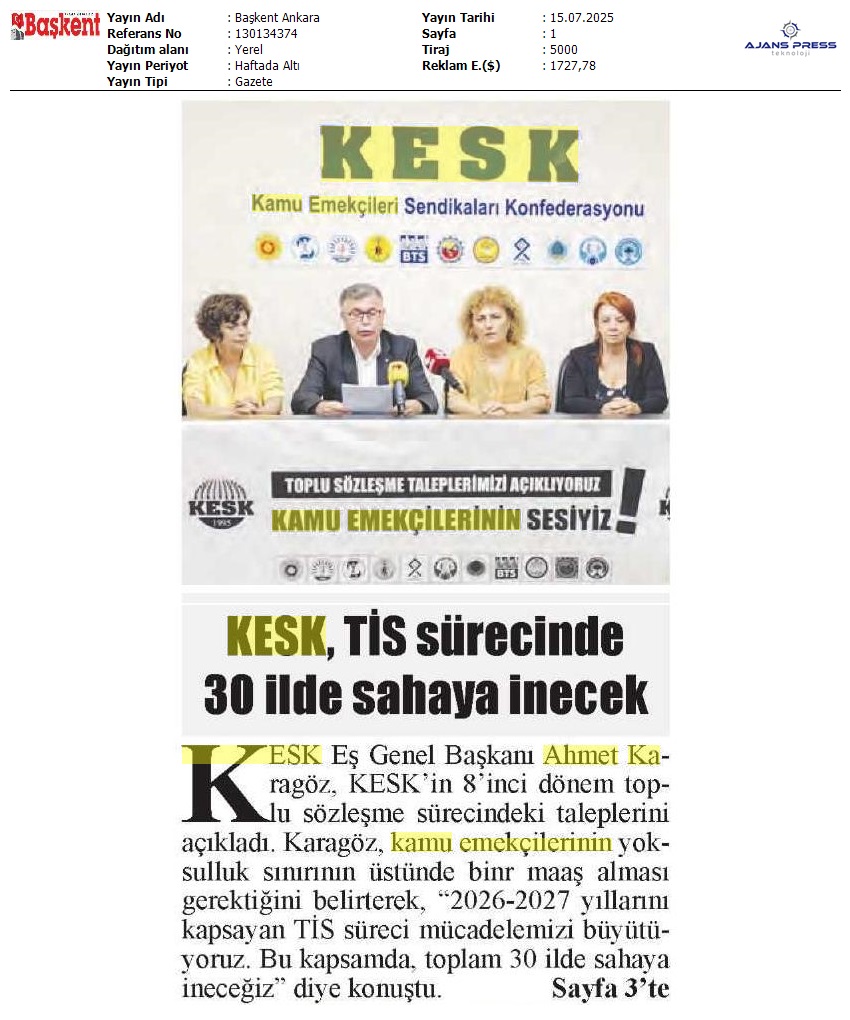 TİS taleplerimiz Gazetelerde: Kamu emekçilerinin sesiyiz!