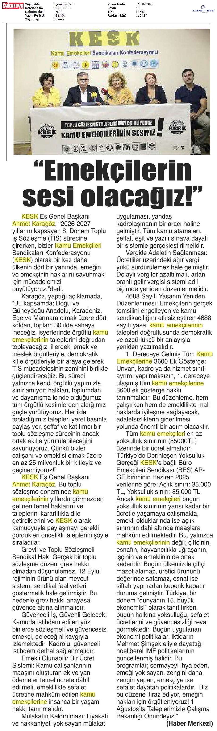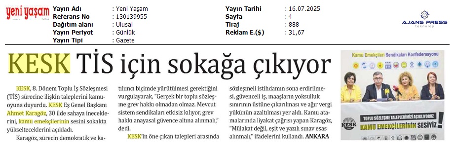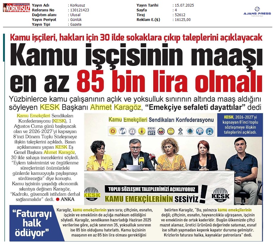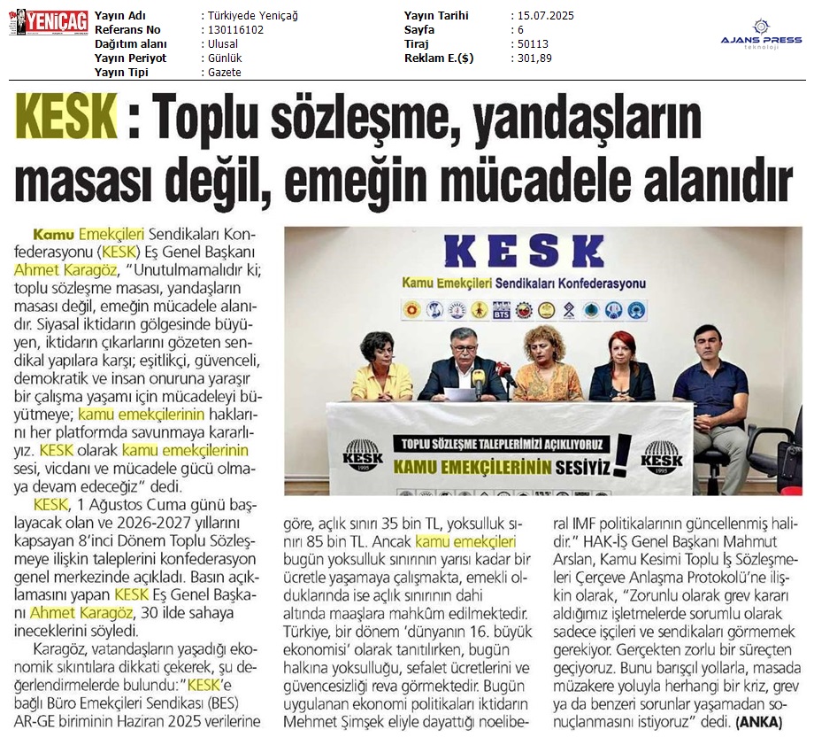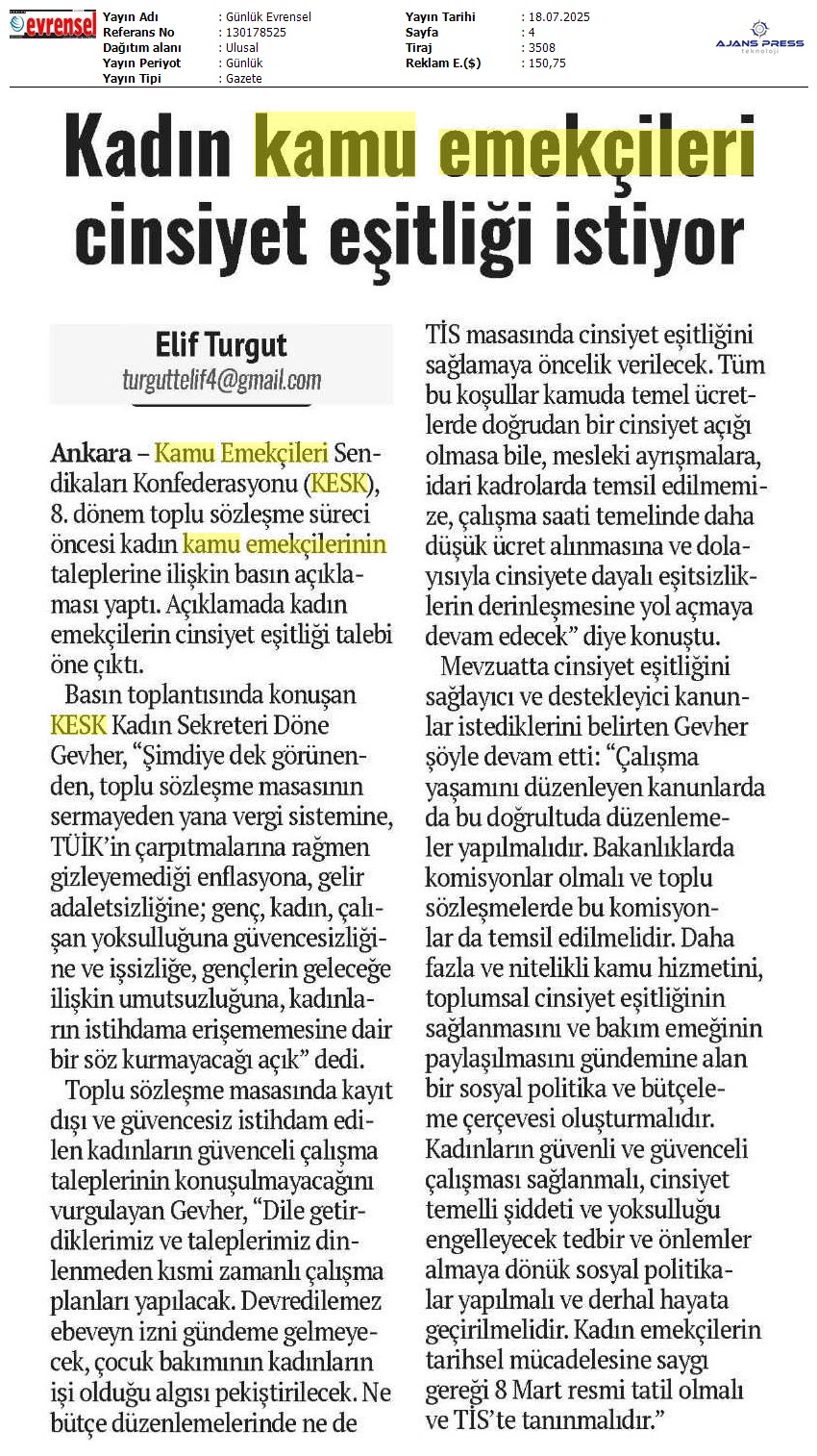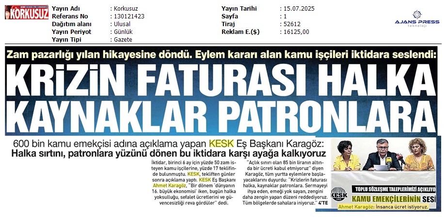 TİS taleplerimiz Gazetelerde: Kamu emekçilerinin sesiyiz!