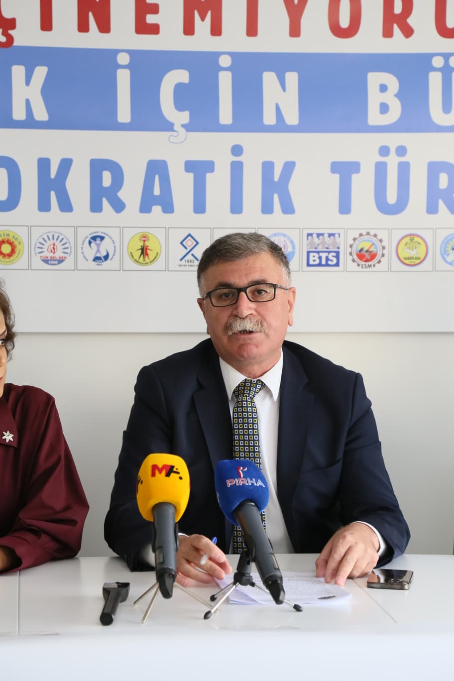 Basın toplantısına KESK ve bağlı sendikaların MYK üyeleri katılırken, açıklamayı KESK Eş Genel Başkanı Ahmet Karagöz okudu: